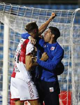 ZCP - 07/05/2024 Gubbio Rimini gara play off di lega pro girone B - nella foto: Esultanza Cernigoi Iacopo(Rimini fc) Lametsa Davide dopo il goal ©Claudio Zamagni/Agenzia Aldo Liverani