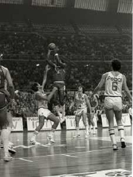 NEG-1983-1984 MILANO CAMPIONATO DI BASKET SERIE A SIMAC MILANO-FEBAL NAPOLI NELLA FOTO AZIONE DI GIOCO AG ALDO LIVERANI SAS