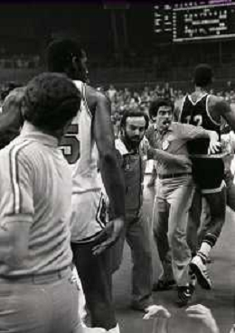 NEG-1983-1984 MILANO CAMPIONATO DI BASKET SERIE A1 SIMAC MILANO-GRANAROLO BOLOGNA NELLA FOTO FRANCO CASALINI CON DAN PETERSON E VITTORIO GALLINARI AG ALDO LIVERANI SAS