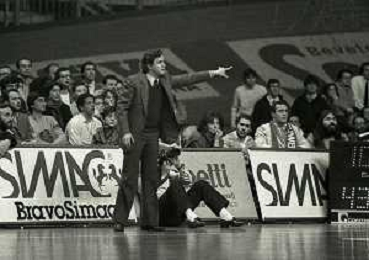NEG-1983-1984 MILANO CAMPIONATO DI BASKET SERIE A1 SIMAC MILANO-GRANAROLO BOLOGNA NELLA FOTO FRANCO CASALINI ALLENATORE IN SECONDA SIMAC MILANO AG ALDO LIVERANI SAS