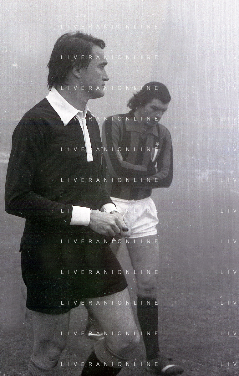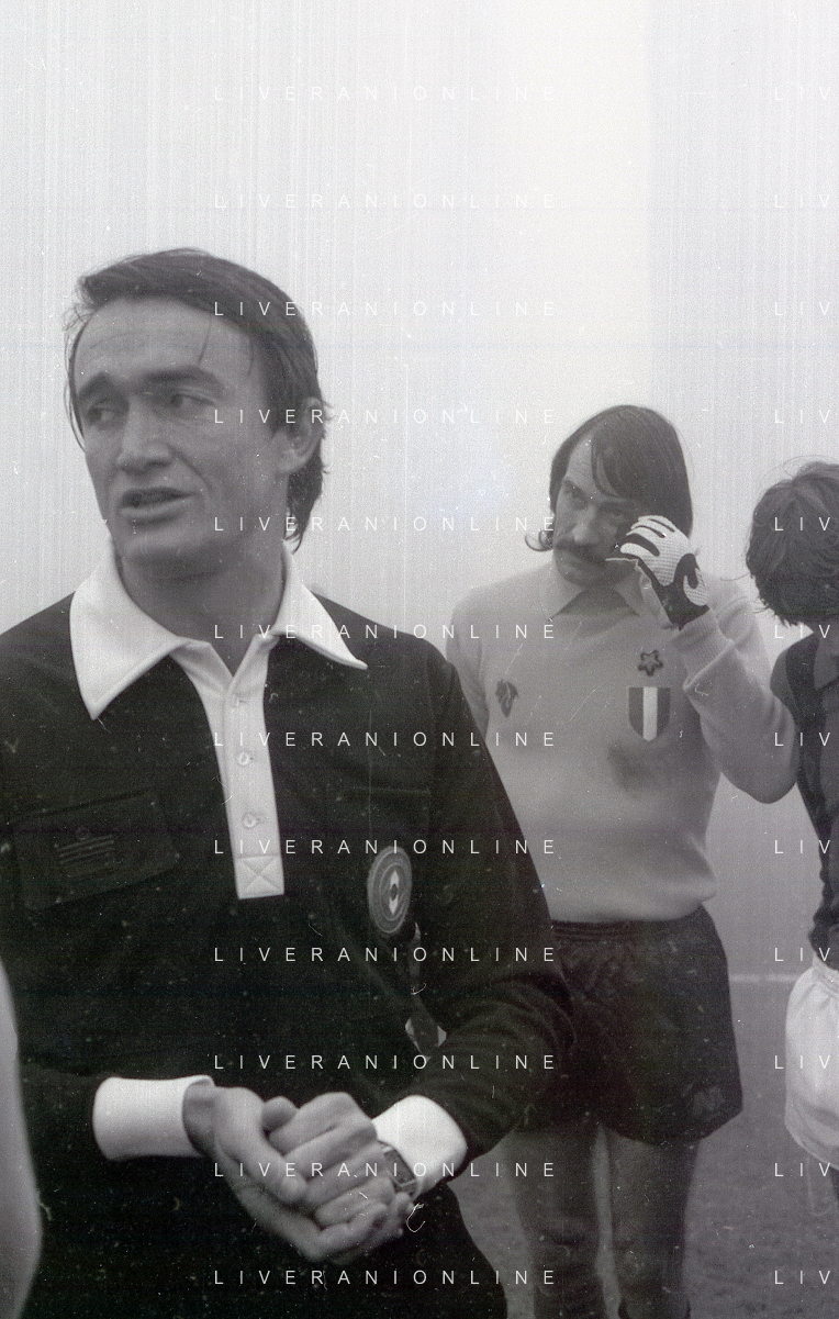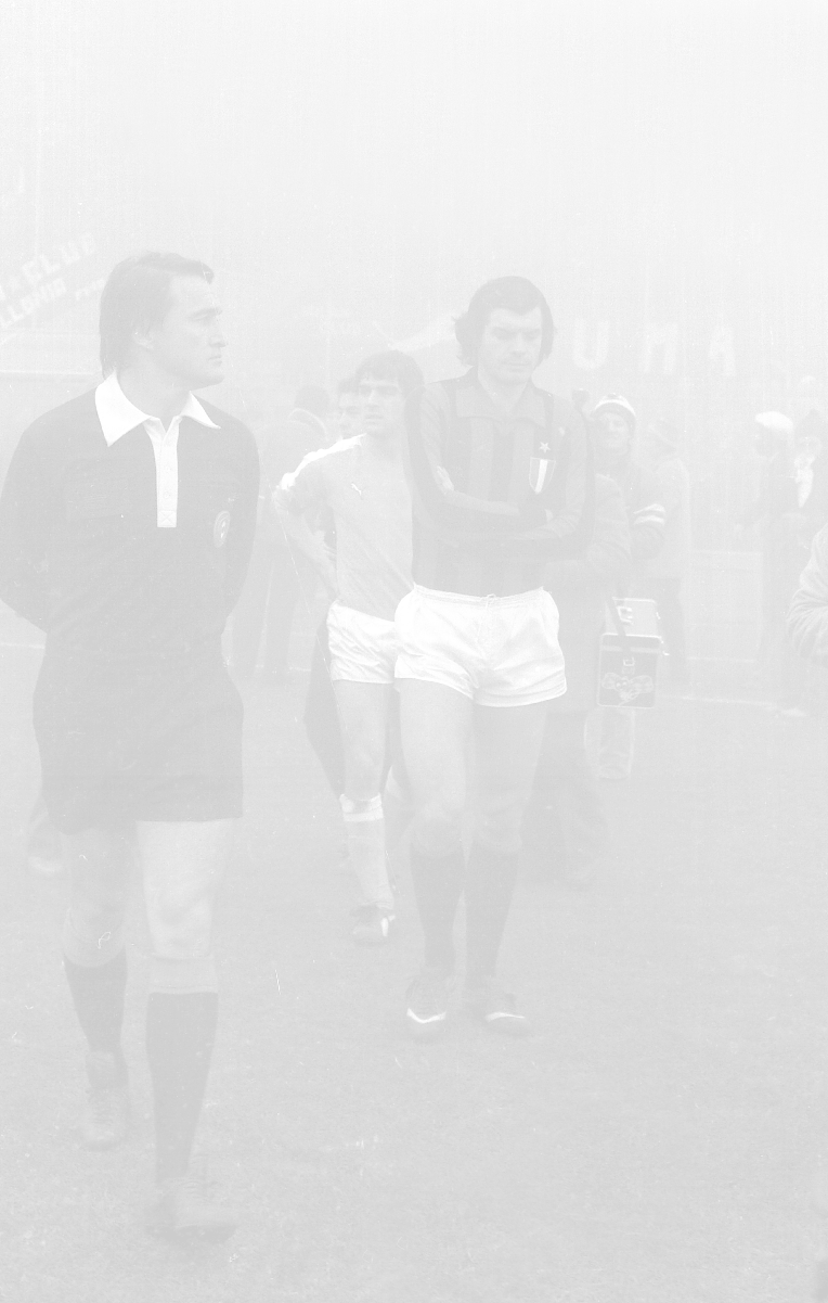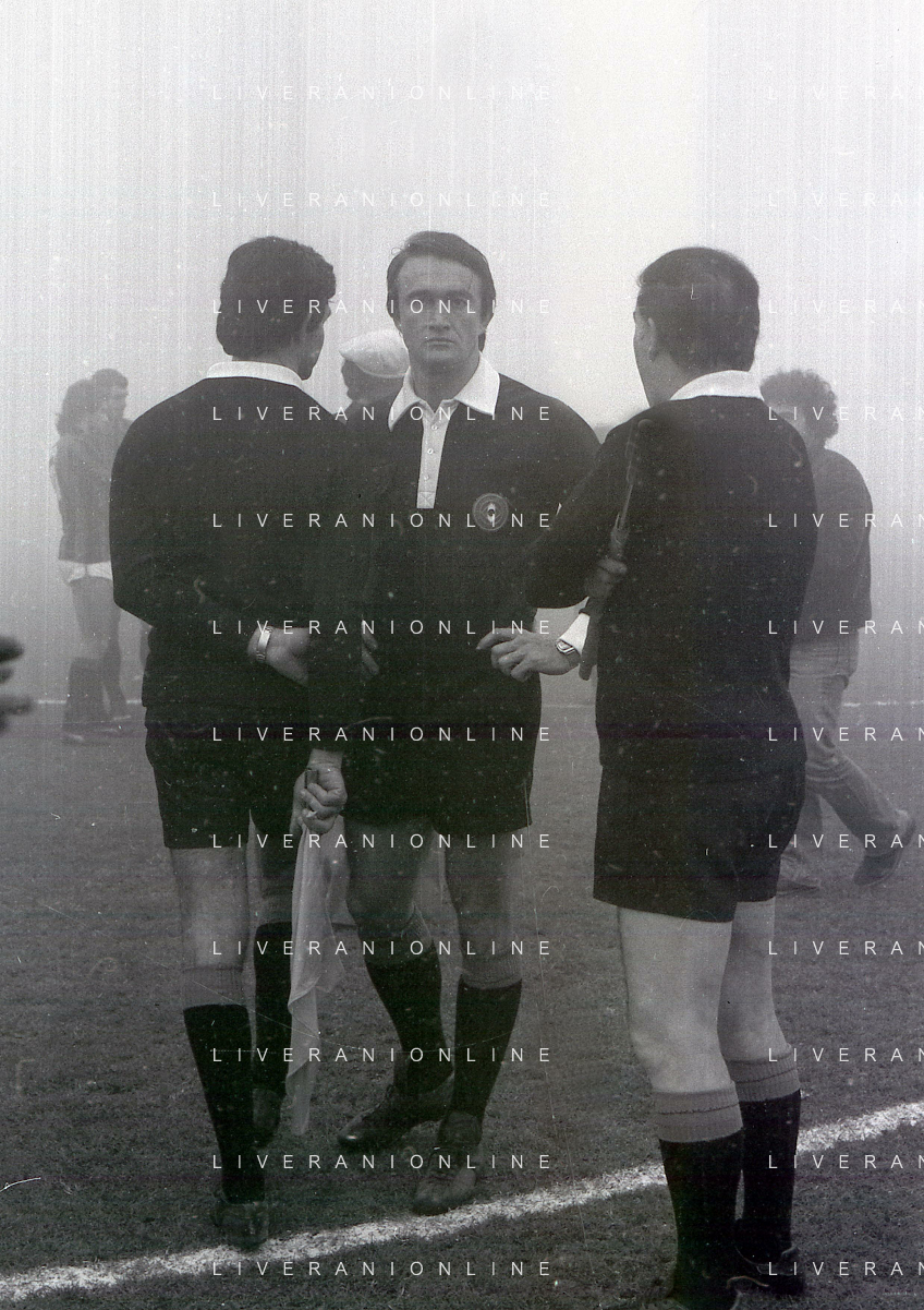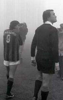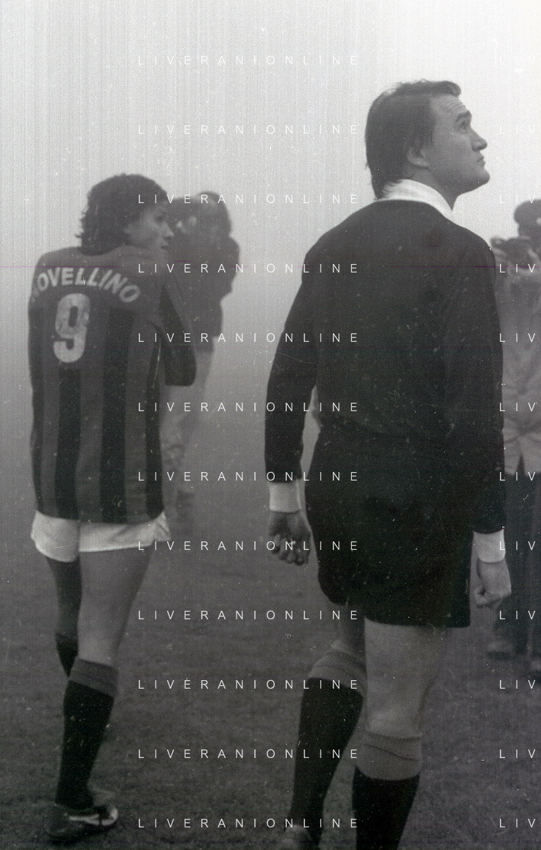 NEG-25-11-1979 MILANO CAMPIONATO DI CALCIO SERIE A MILAN-NAPOLI SOSPESA PER NEBBIA NELLA FOTO L'ARBITRO BERGAMO PAOLO SOSPENDE LA PARTITA AG ALDO LIVERANI SAS
