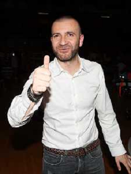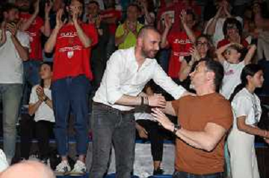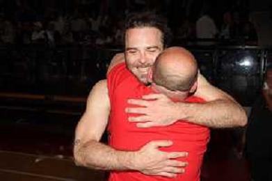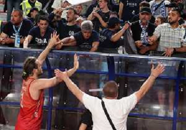 IMOLA 10 05 2024 PLAY OFF SERIE B ANDREA COSTA BASKET-LIVORNO NELLA FOTO CAPITANO NUNZIO CORCELLI CON I TIFOSI ©SANNA / AGENZIA ALDO LIVERANI SAS