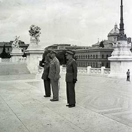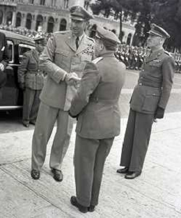 NEG-1950 ROMA DEPOSIZIONE CORONA AL MILITE IGNOTO NELLA FOTO IL GENERALE MARK WAYNE CLARK AL MILITE IGNOTO A ROMA ANNO 1950 FOTO SANFRO VESPASIANI-AG ALDO LIVERANI SAS