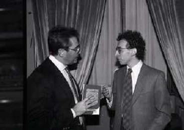 NEG -RETROSPETTIVA ROBERTO MONGINI NELLA FOTO ROBERTO MONGINI A MILANO NELL'ANNO 1987 PRESENTA IL SUO LIBRO“GLI IMPUNITI STORIA DI ORDINARIA CORRUZZIONE“ CON GAD LERNER AG ALDO LIVERANI SAS