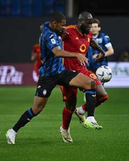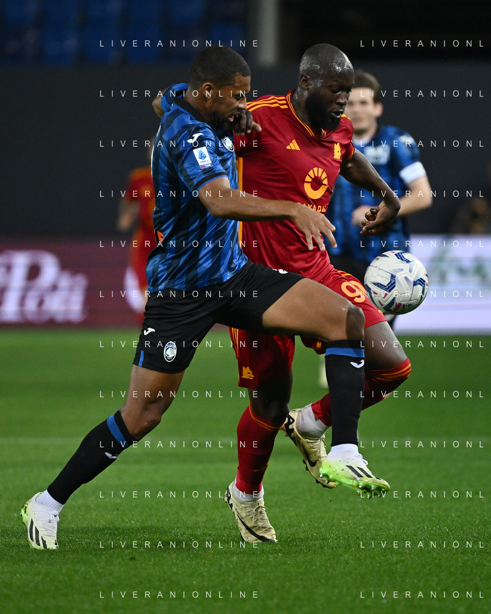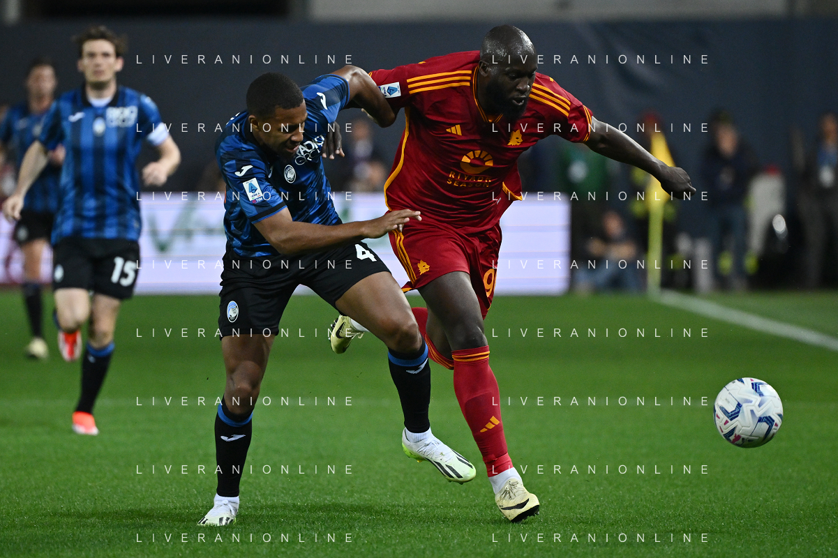 TVRG Atalanta vs Roma nella foto Isak Hien (Atalanta) e Romelu Lukaku (Roma) Bergamo 12-05-2024 Gewiss Stadium Campionato Serie A TIM - 36a giornata foto Roberto Garavaglia/Agenzia Aldo Liverani sas/ AGENZIA ALDO LIVERANI SAS