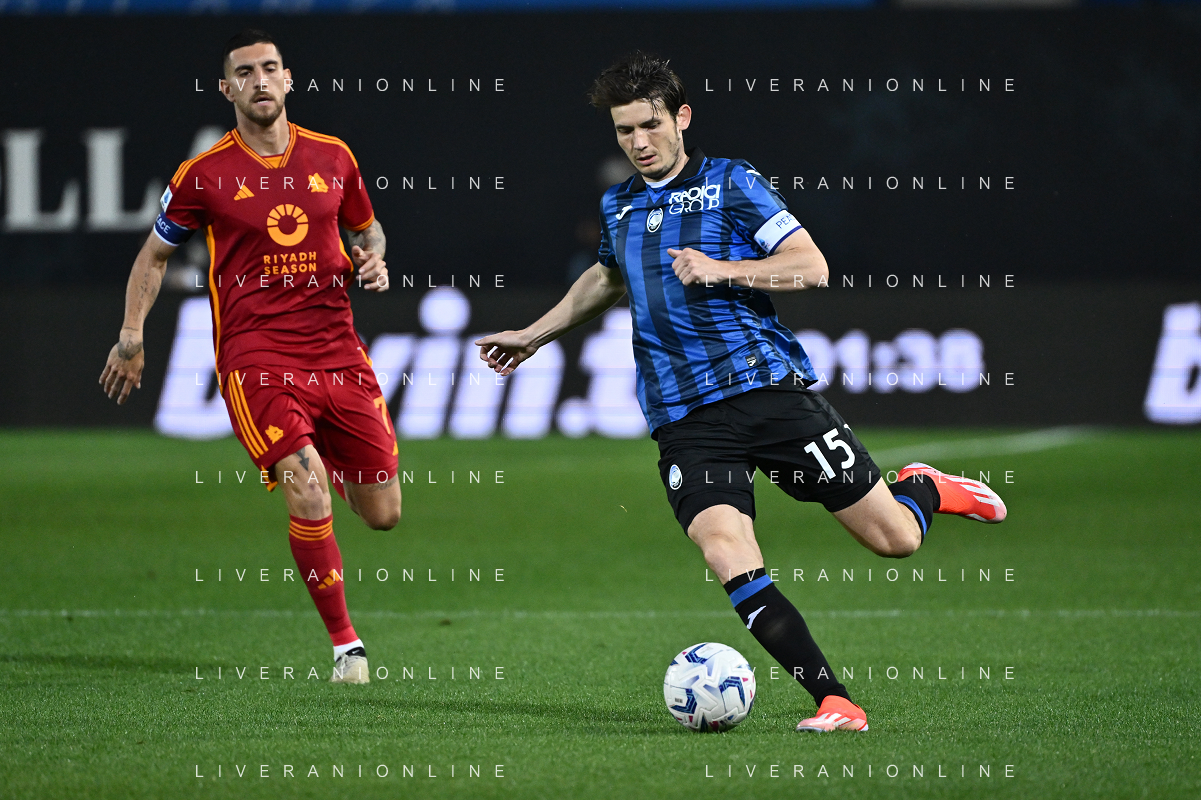 TVRG Atalanta vs Roma nella foto Marten de Roon (Atalanta) e sulla SX Lorenzo Pellegrini (Roma) Bergamo 12-05-2024 Gewiss Stadium Campionato Serie A TIM - 36a giornata foto Roberto Garavaglia/Agenzia Aldo Liverani sas/ AGENZIA ALDO LIVERANI SAS