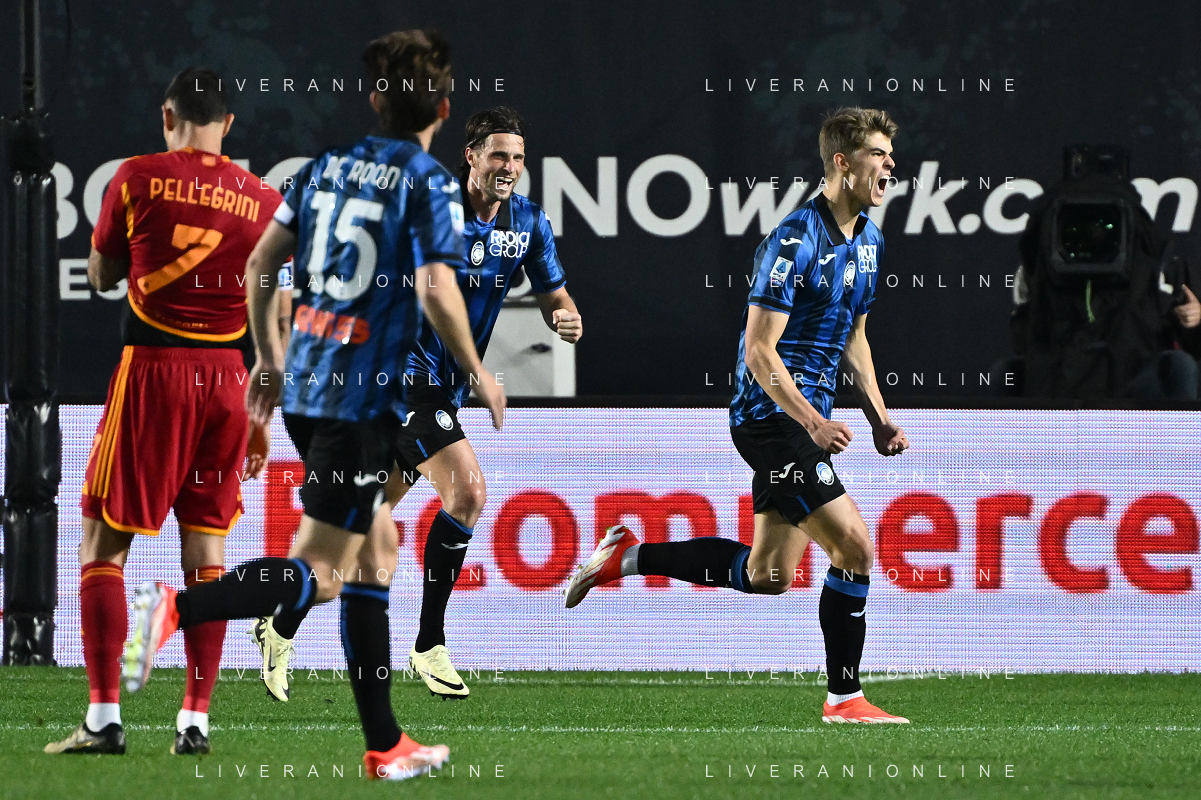 TVRG Atalanta vs Roma nella foto Charles de Ketelaere (Atalanta) segna il gol del 2 a 0 Bergamo 12-05-2024 Gewiss Stadium Campionato Serie A TIM - 36a giornata foto Roberto Garavaglia/Agenzia Aldo Liverani sas/ AGENZIA ALDO LIVERANI SAS