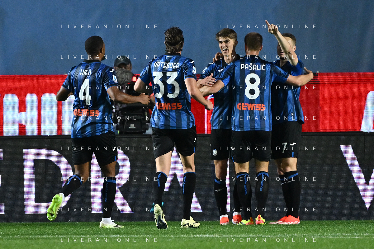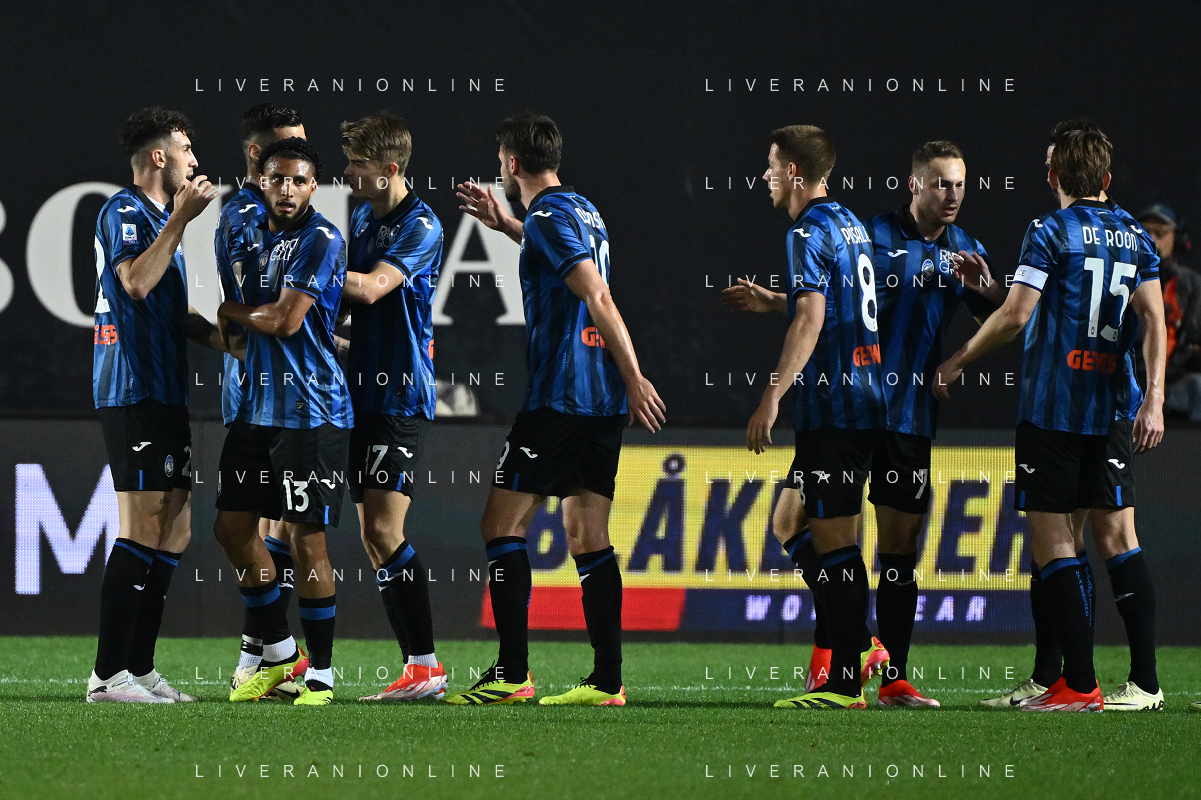 TVRG Atalanta vs Roma nella foto esultanza Atalanta dopo il gol dell''1 a 0 Charles de Ketelaere Bergamo 12-05-2024 Gewiss Stadium Campionato Serie A TIM - 36a giornata foto Roberto Garavaglia/Agenzia Aldo Liverani sas/ AGENZIA ALDO LIVERANI SAS