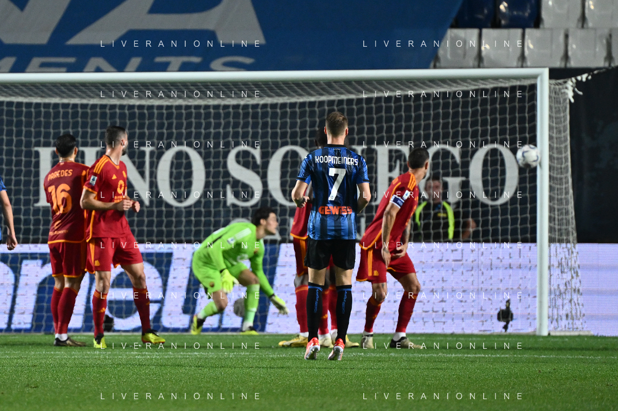TVRG Atalanta vs Roma nella foto Teun Koopmeiners (Atalanta) colpisce il palo su punizione occasione da gol per il possibile 3 a 0 Bergamo 12-05-2024 Gewiss Stadium Campionato Serie A TIM - 36a giornata foto Roberto Garavaglia/Agenzia Aldo Liverani sas/ AGENZIA ALDO LIVERANI SAS