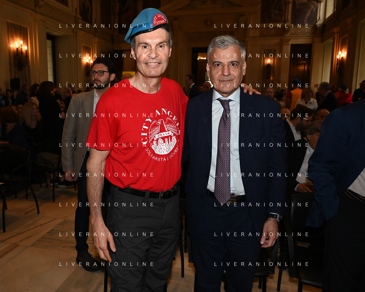 TVRG Premio Campione City Angels nella foto Mario Furlan SX e Giuseppe Sala DX Milano 14-05-2024 I City Angels di hanno premiato alcune persone o associazioni quali campioni di solidarietà, legalità e civismo foto Roberto Garavaglia/Agenzia Aldo Liverani sas/ AGENZIA ALDO LIVERANI SAS