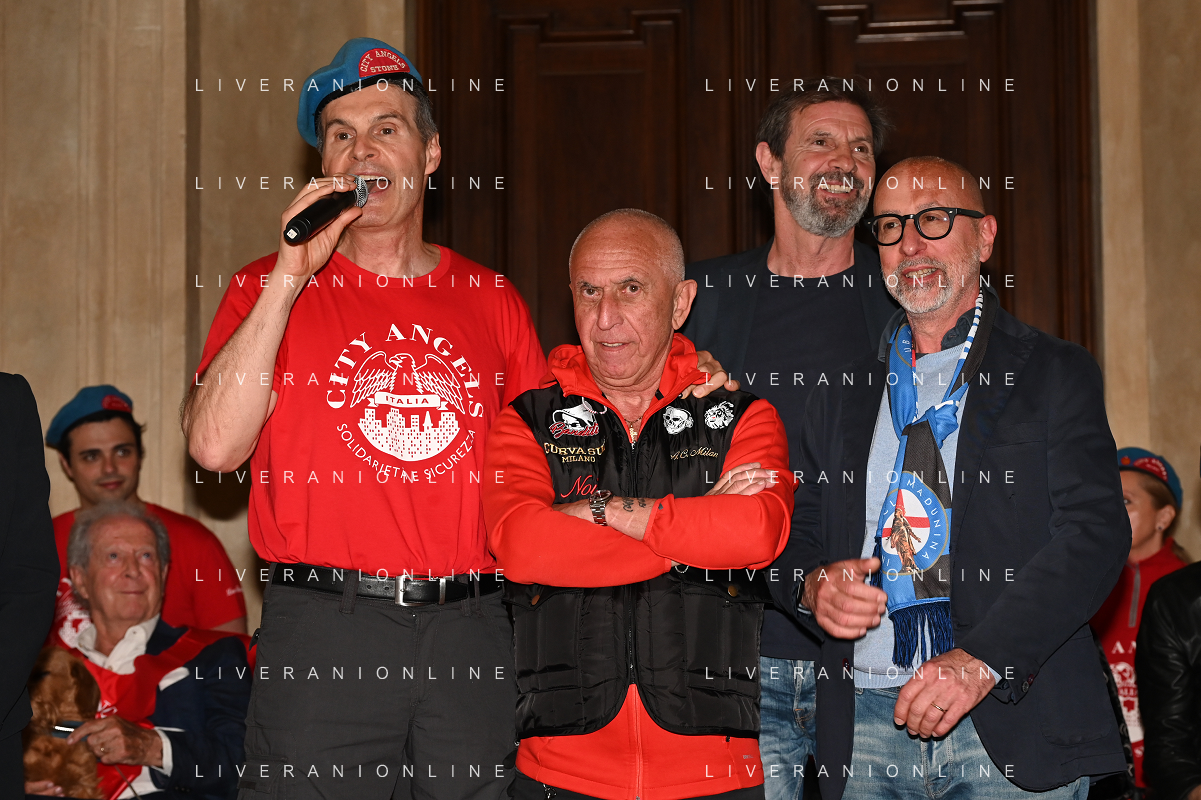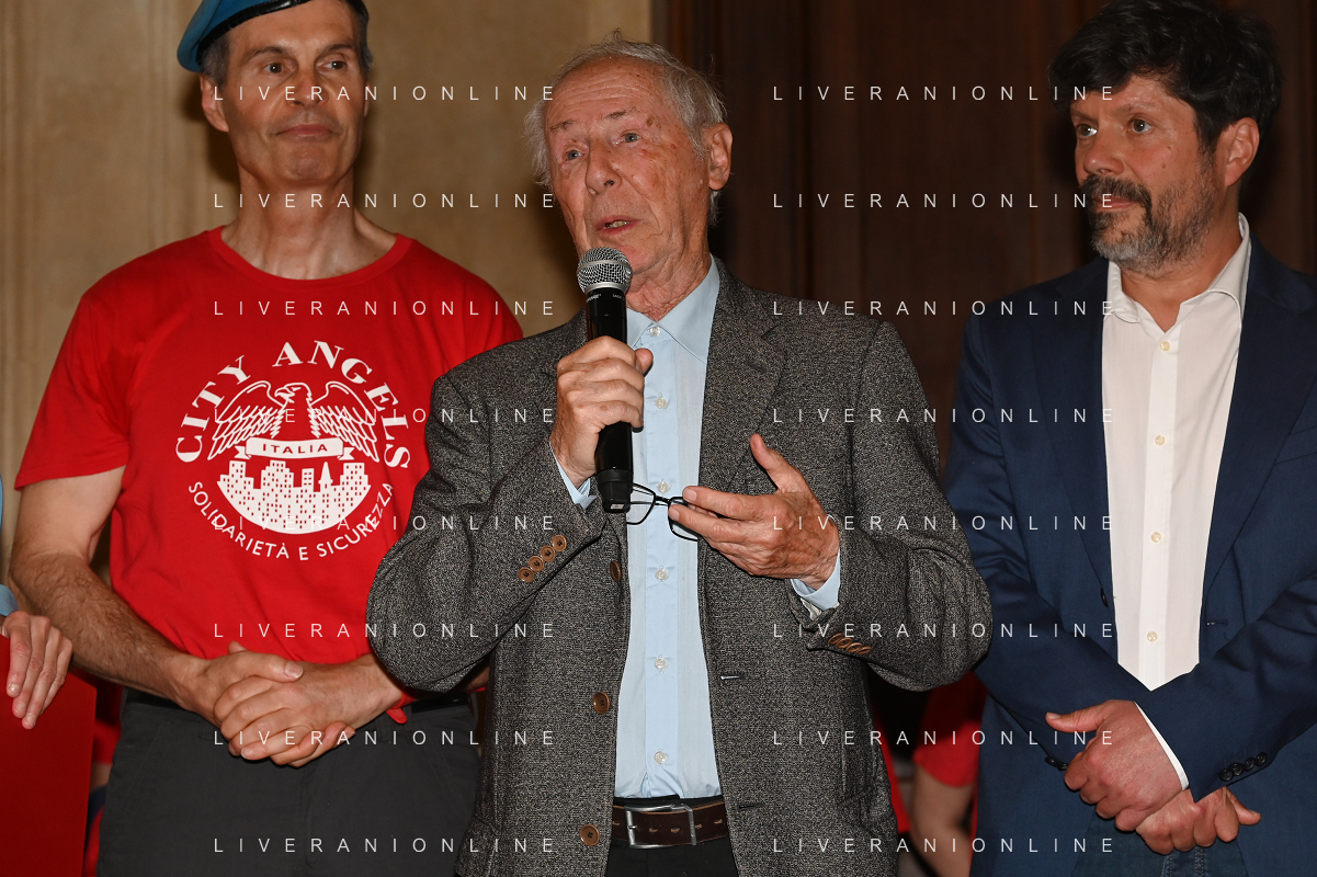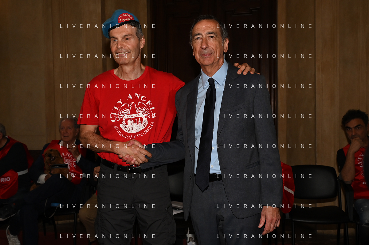 TVRG Premio Campione City Angels nella foto da SX Giuseppe Sala, Claudio Sgaraglia e Giuseppe Petronzi rispettivamente sindaco, prefetto e questore di Milano Milano 14-05-2024 I City Angels di hanno premiato alcune persone o associazioni quali campioni di solidarietà, legalità e civismo foto Roberto Garavaglia/Agenzia Aldo Liverani sas/ AGENZIA ALDO LIVERANI SAS