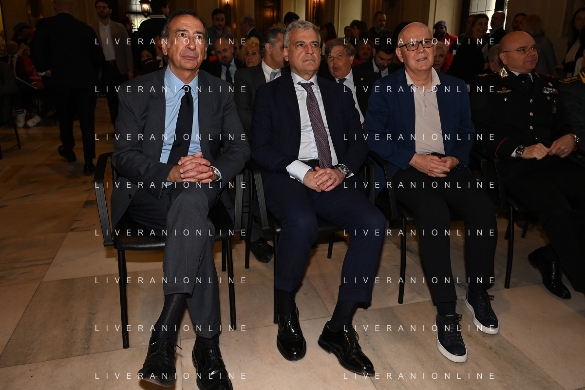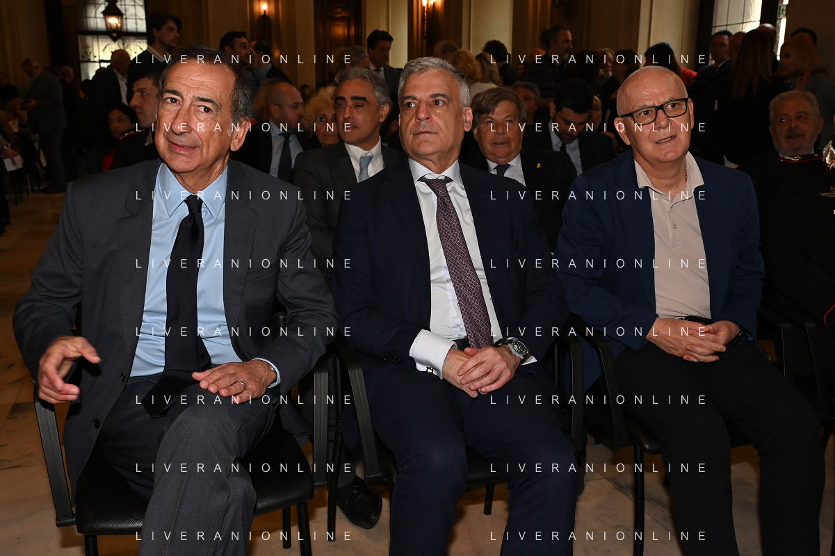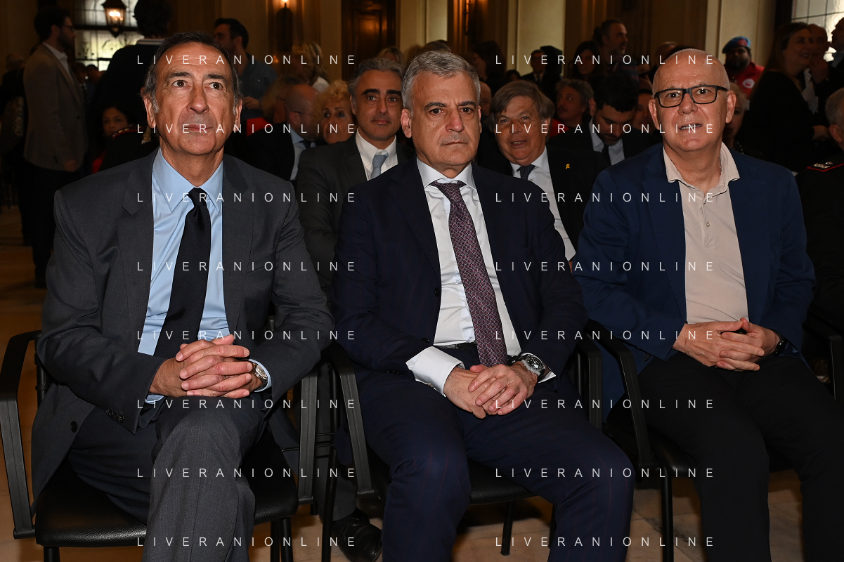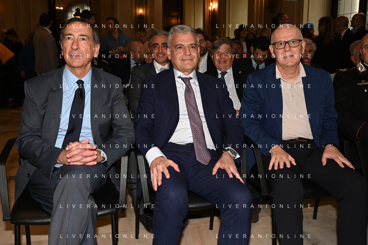 TVRG Premio Campione City Angels nella foto da SX Giuseppe Sala, Claudio Sgaraglia e Giuseppe Petronzi rispettivamente sindaco, prefetto e questore di Milano Milano 14-05-2024 I City Angels di hanno premiato alcune persone o associazioni quali campioni di solidarietà, legalità e civismo foto Roberto Garavaglia/Agenzia Aldo Liverani sas/ AGENZIA ALDO LIVERANI SAS