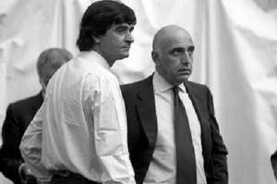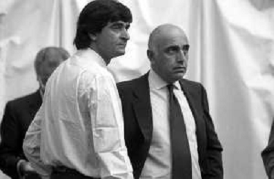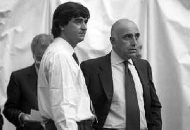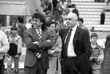 Neg- RETROSPETTIVA ADRIANO GALLIANI , Dirigente Sportivo Calcio Nella foto ADRIANO GALLIANI amministratore delegato MILAN nell'anno 1992-1993 con Ariedo Braida AG ALDO LIVERANI