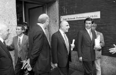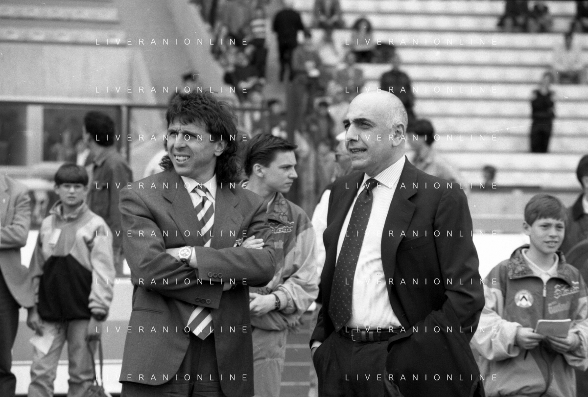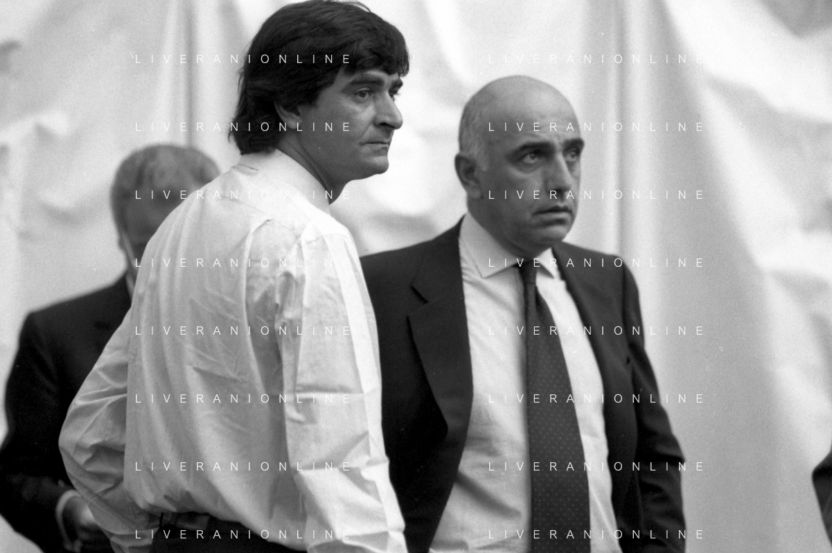 Neg- RETROSPETTIVA ADRIANO GALLIANI , Dirigente Sportivo Calcio Nella foto ADRIANO GALLIANI amministratore delegato MILAN nell'anno 1992-1993 con Paolo Taveggia AG ALDO LIVERANI