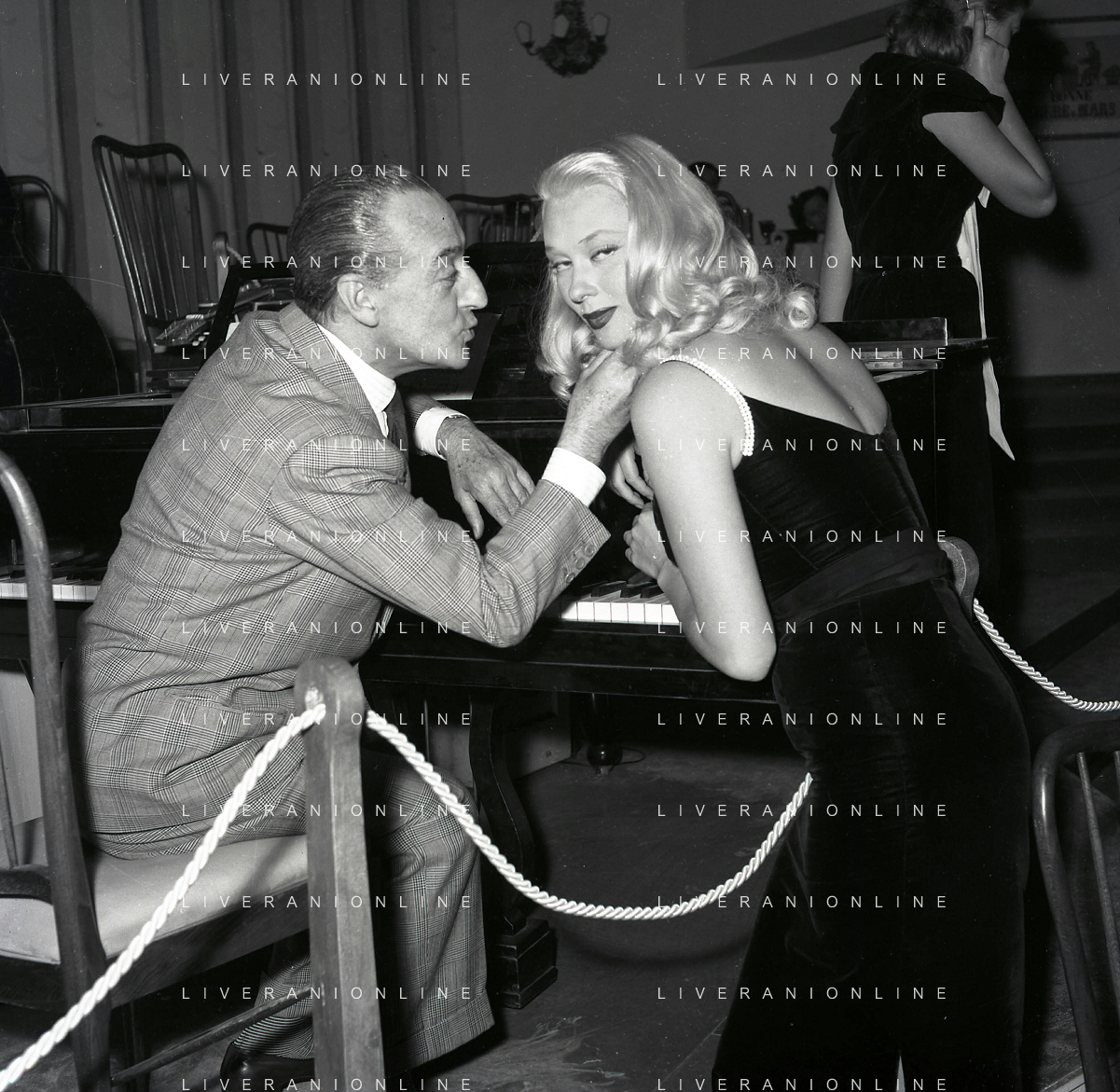 NEG-RETROSPETTIVA ANTONIO DE CURTIS IN ARTE TOTO' NELLA FOTO ANTONIO DE CURTIS IN ARTE TOTO' CON MISS AUSTRALIA DORIAN GRAY A ROMA NELL'ANNO 1950 FOTO SANDRO VESPASIANI-AG ALDO LIVERANI SAS