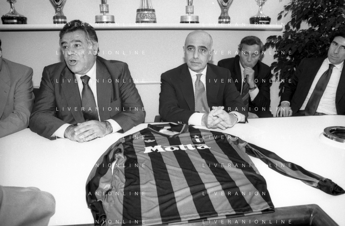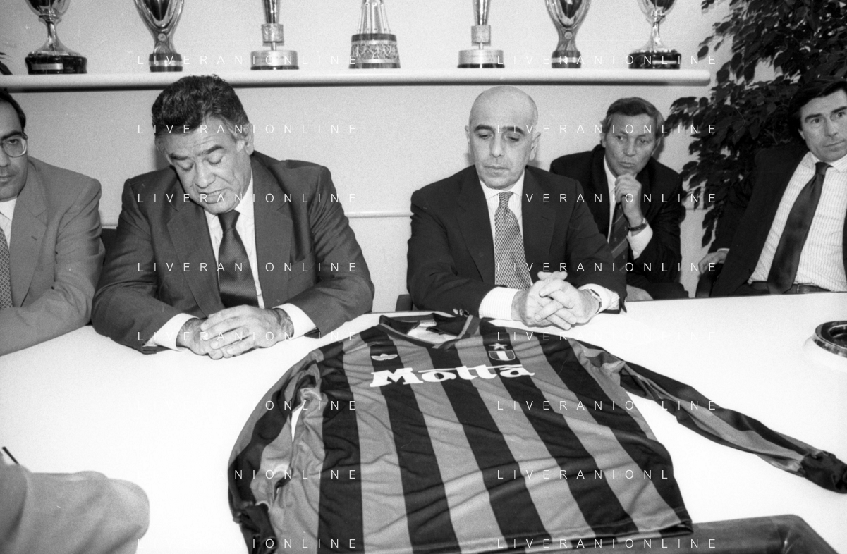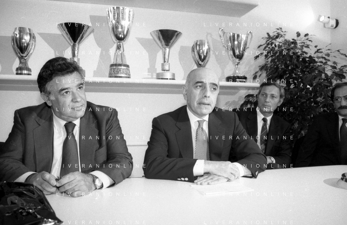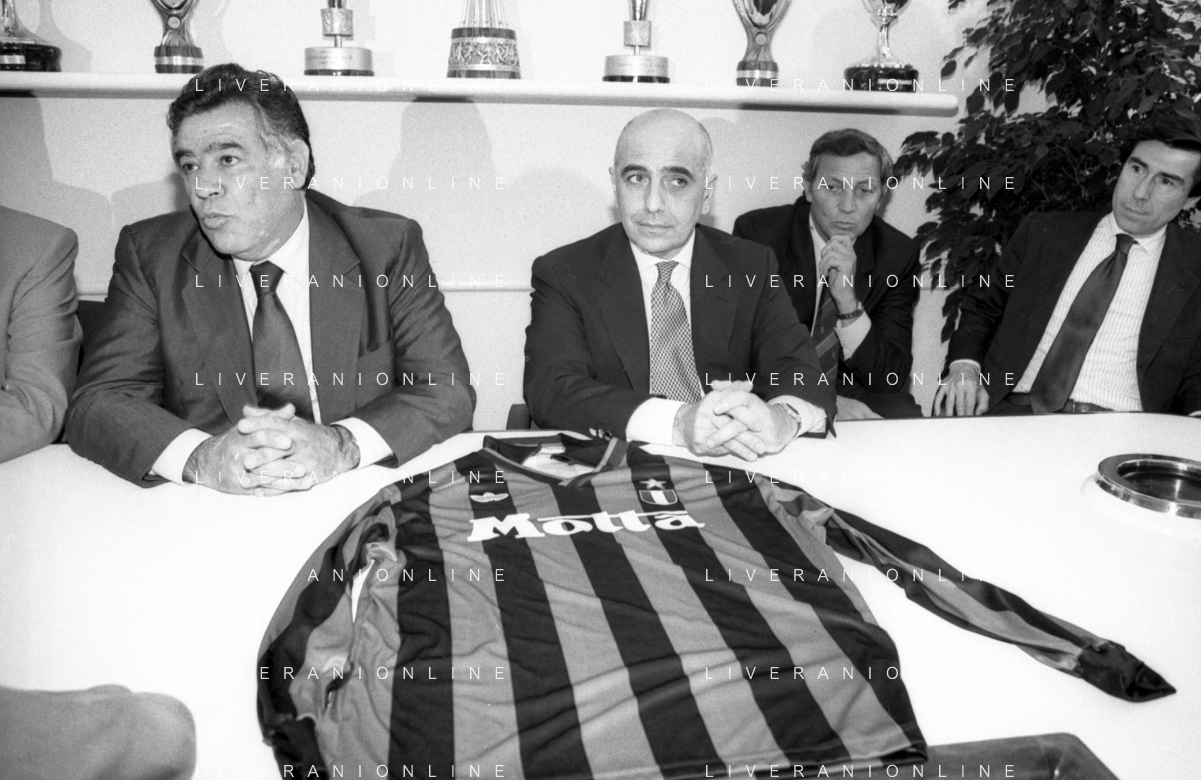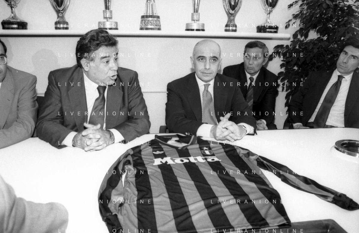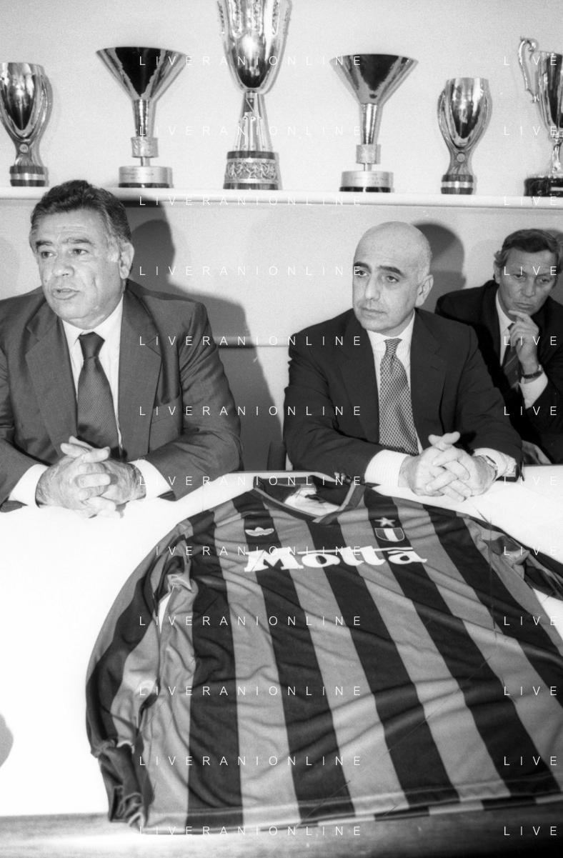 Neg- RETROSPETTIVA ADRIANO GALLIANI , Dirigente Sportivo Calcio Nella foto ADRIANO GALLIANI amministratore delegato MILAN CALCIO, ALLA PRESENTAZIONE DELLO SPONSOR 'MOTTA' CAMPIONATO 1992-1993 CON ARIEDO BRAIDA AG ALDO LIVERANI