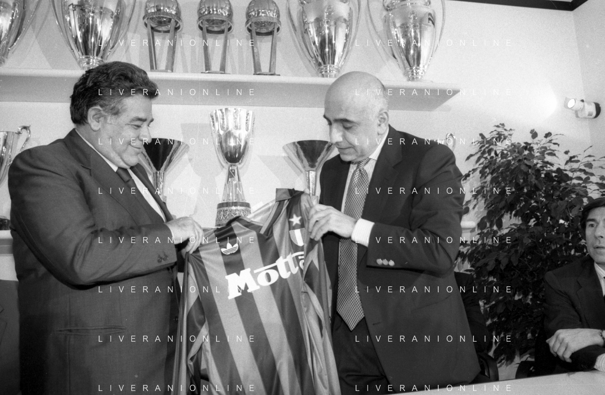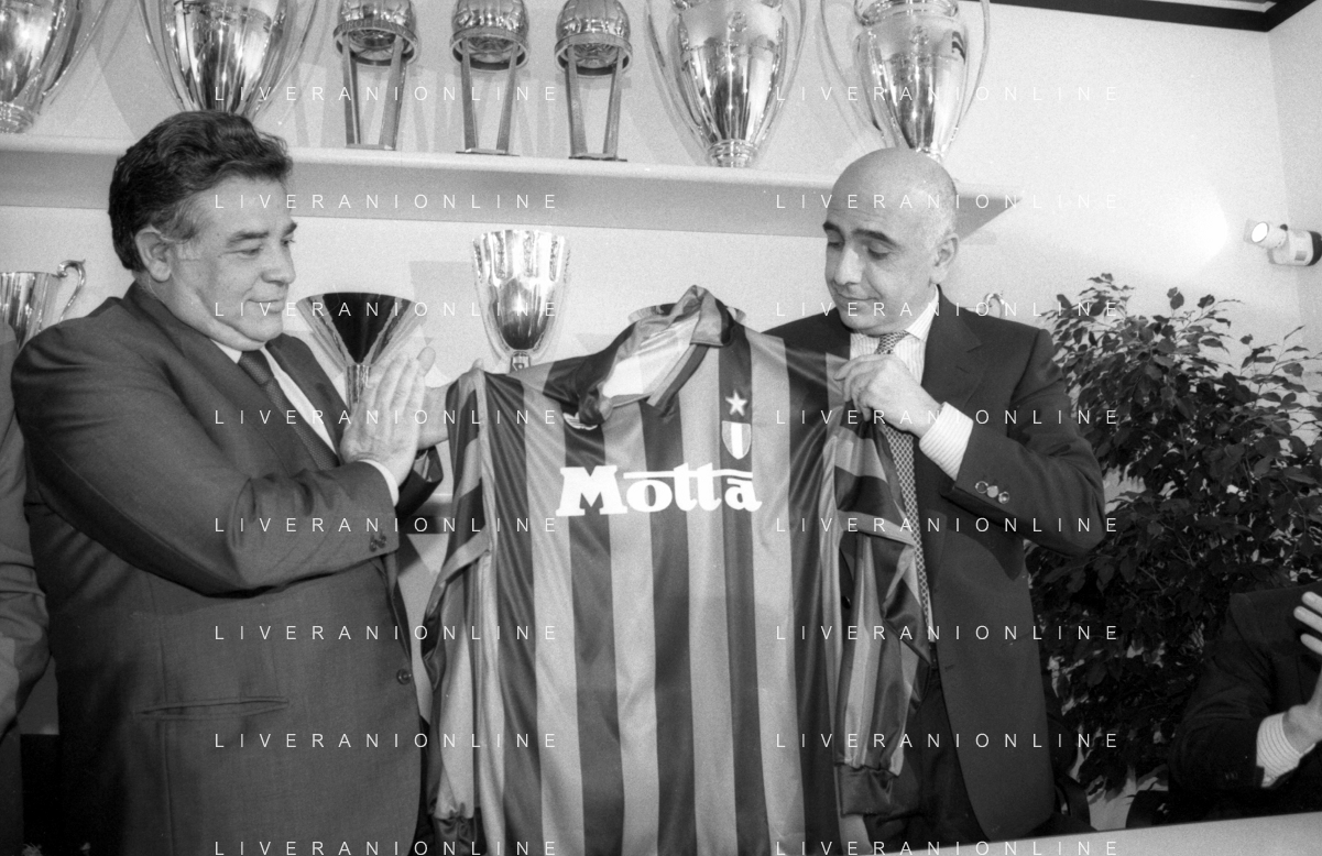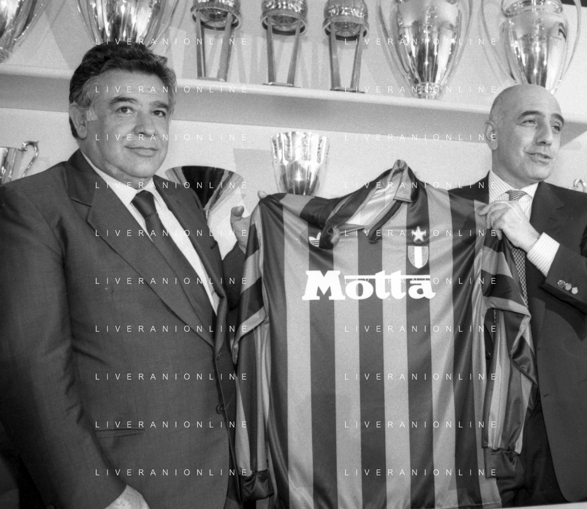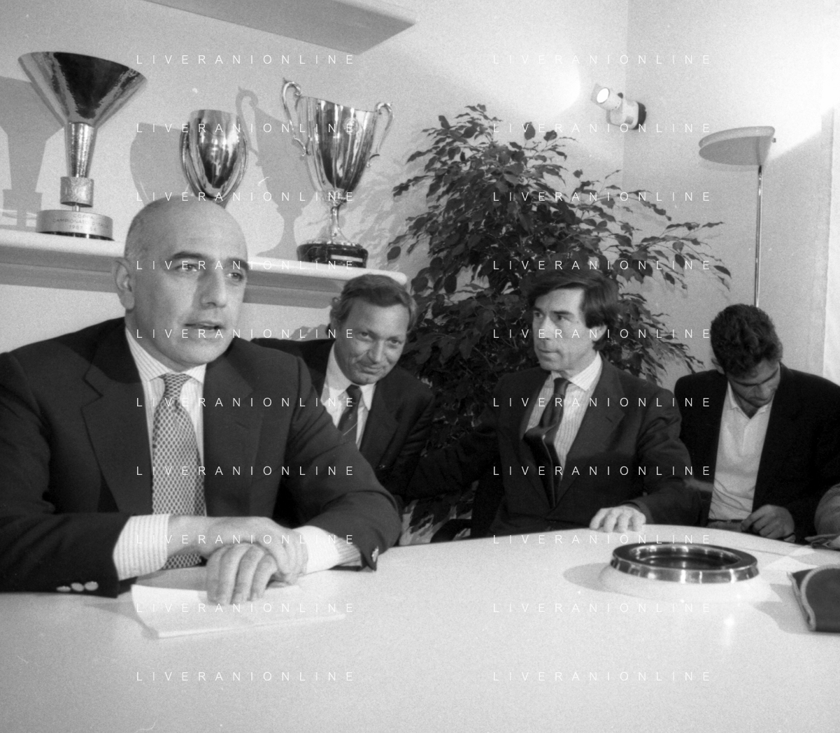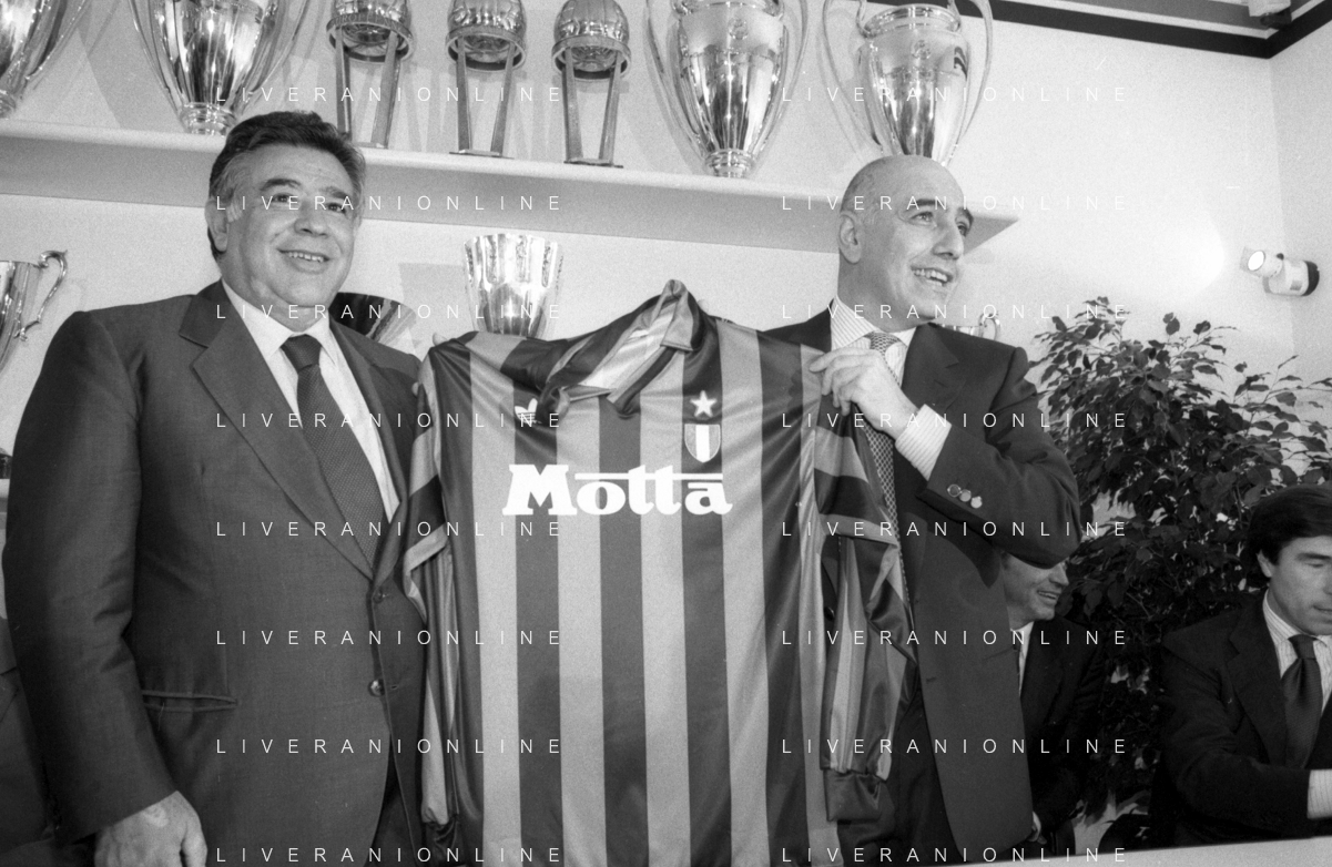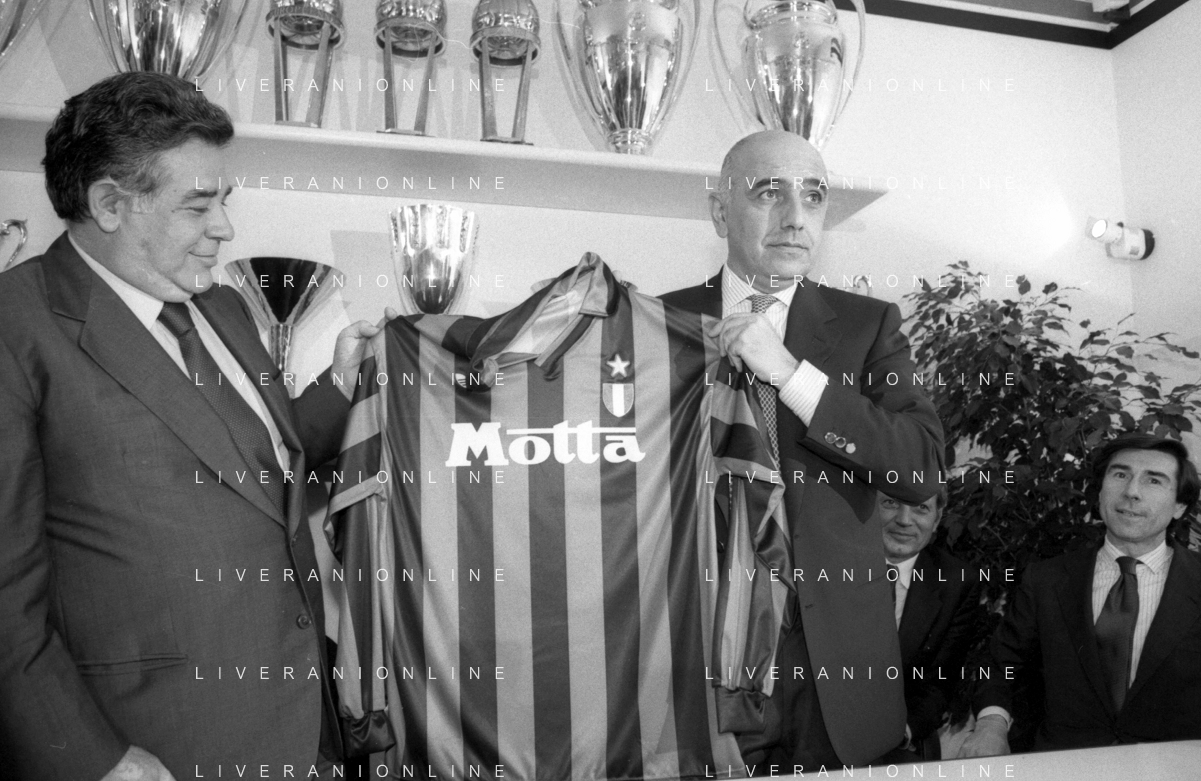 Neg- RETROSPETTIVA ADRIANO GALLIANI , Dirigente Sportivo Calcio Nella foto ADRIANO GALLIANI amministratore delegato MILAN CALCIO, ALLA PRESENTAZIONE DELLO SPONSOR 'MOTTA' CAMPIONATO 1992-1993 CON ARIEDO BRAIDA AG ALDO LIVERANI