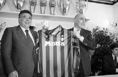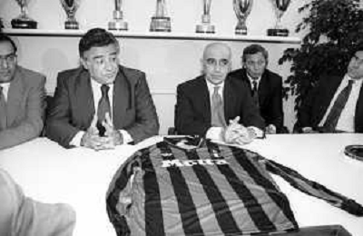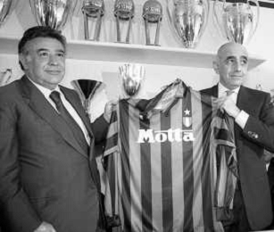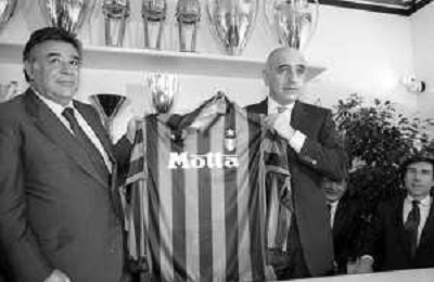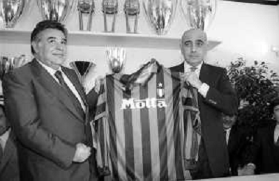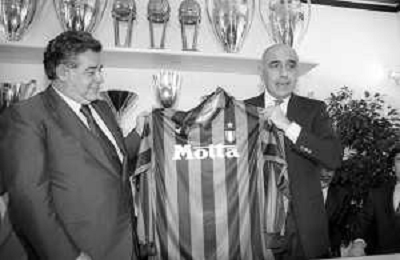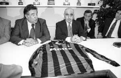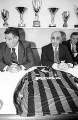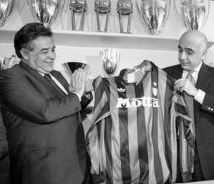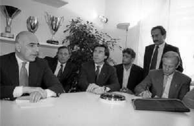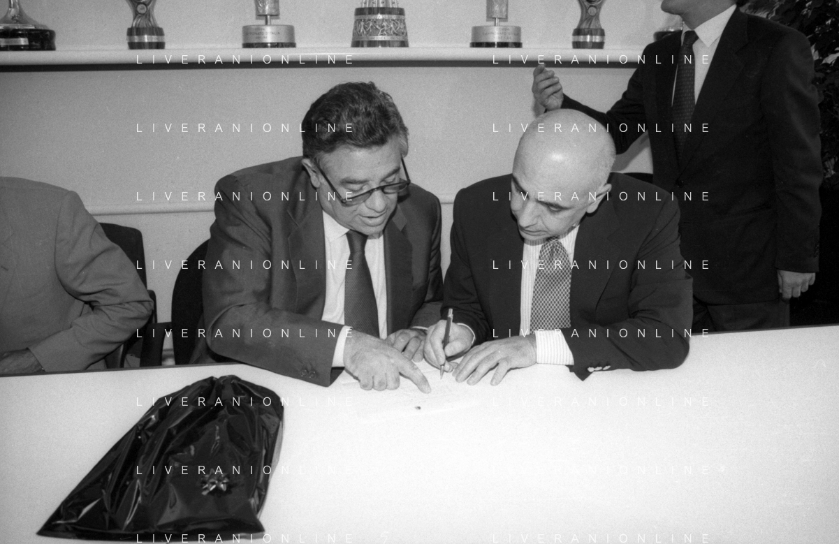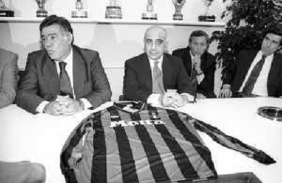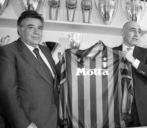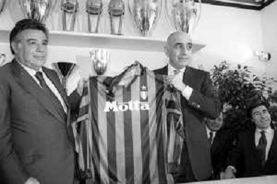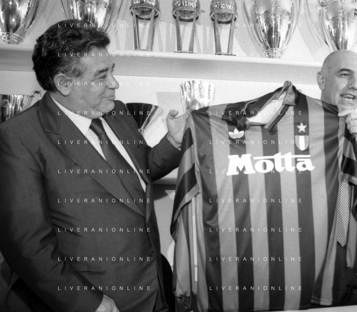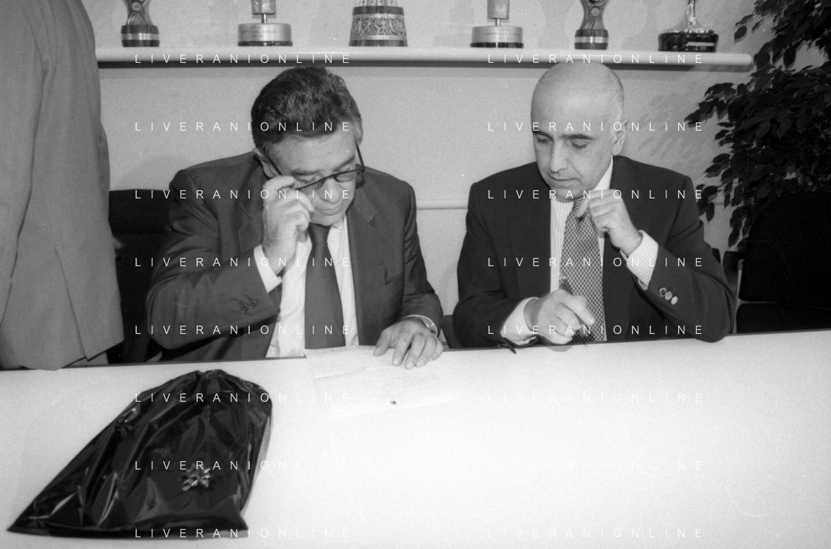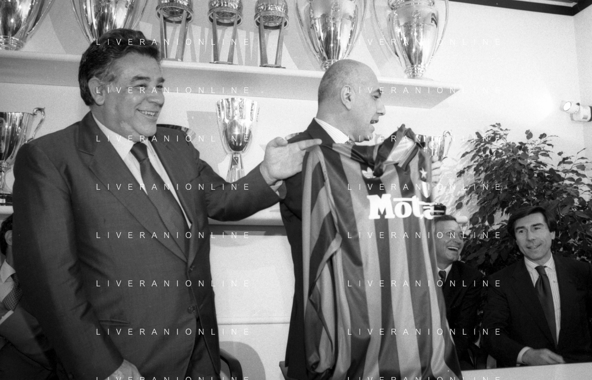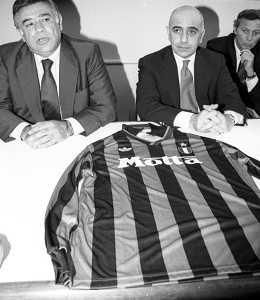 Neg- RETROSPETTIVA ADRIANO GALLIANI , Dirigente Sportivo Calcio Nella foto ADRIANO GALLIANI amministratore delegato MILAN CALCIO, ALLA PRESENTAZIONE DELLO SPONSOR 'MOTTA' CAMPIONATO 1992-1993 CON ARIEDO BRAIDA AG ALDO LIVERANI