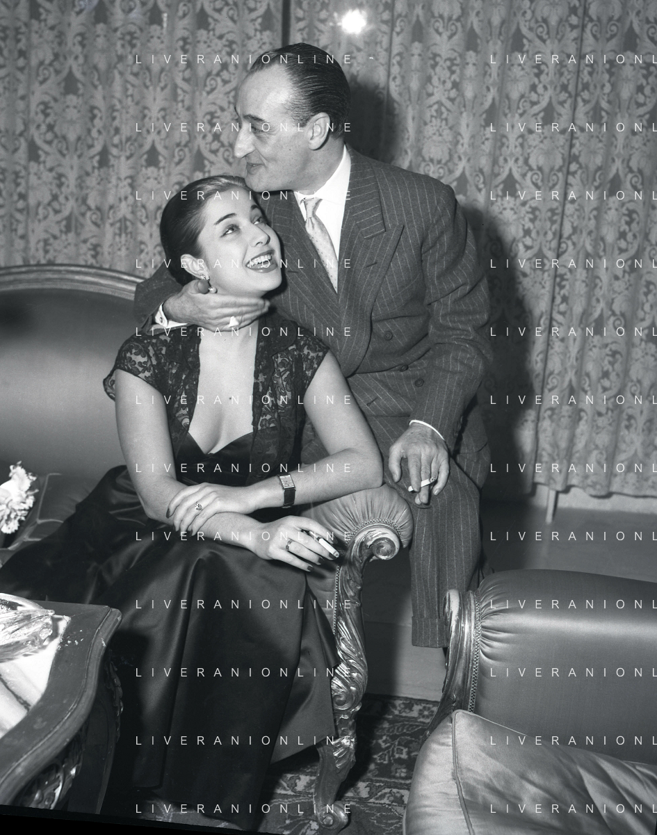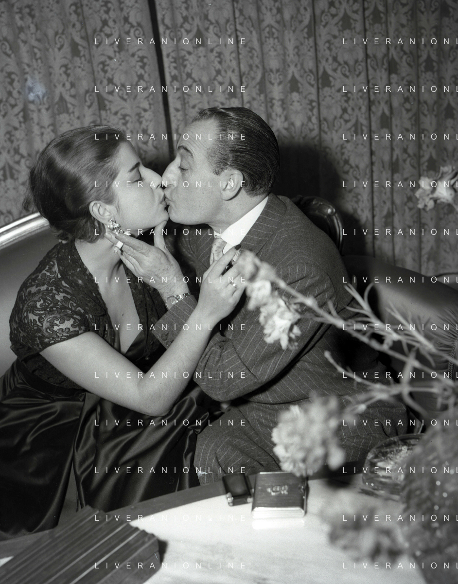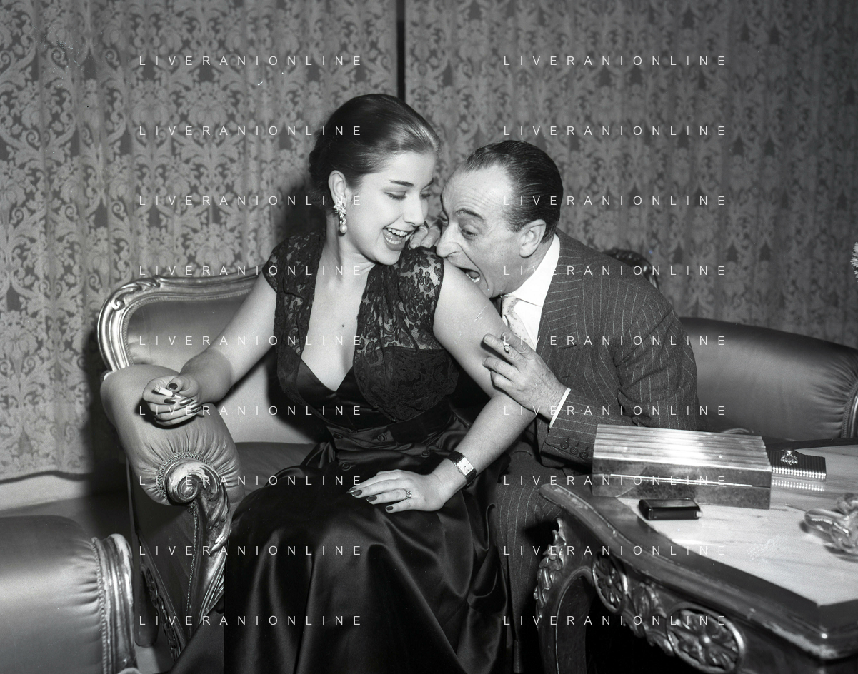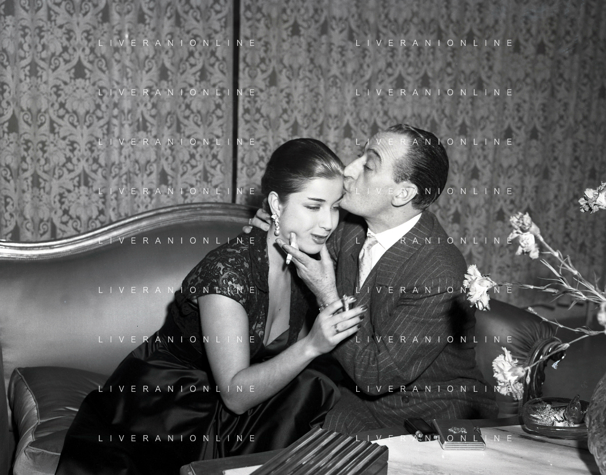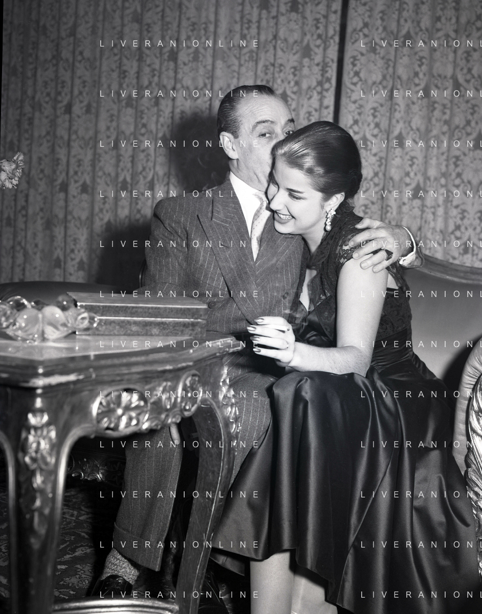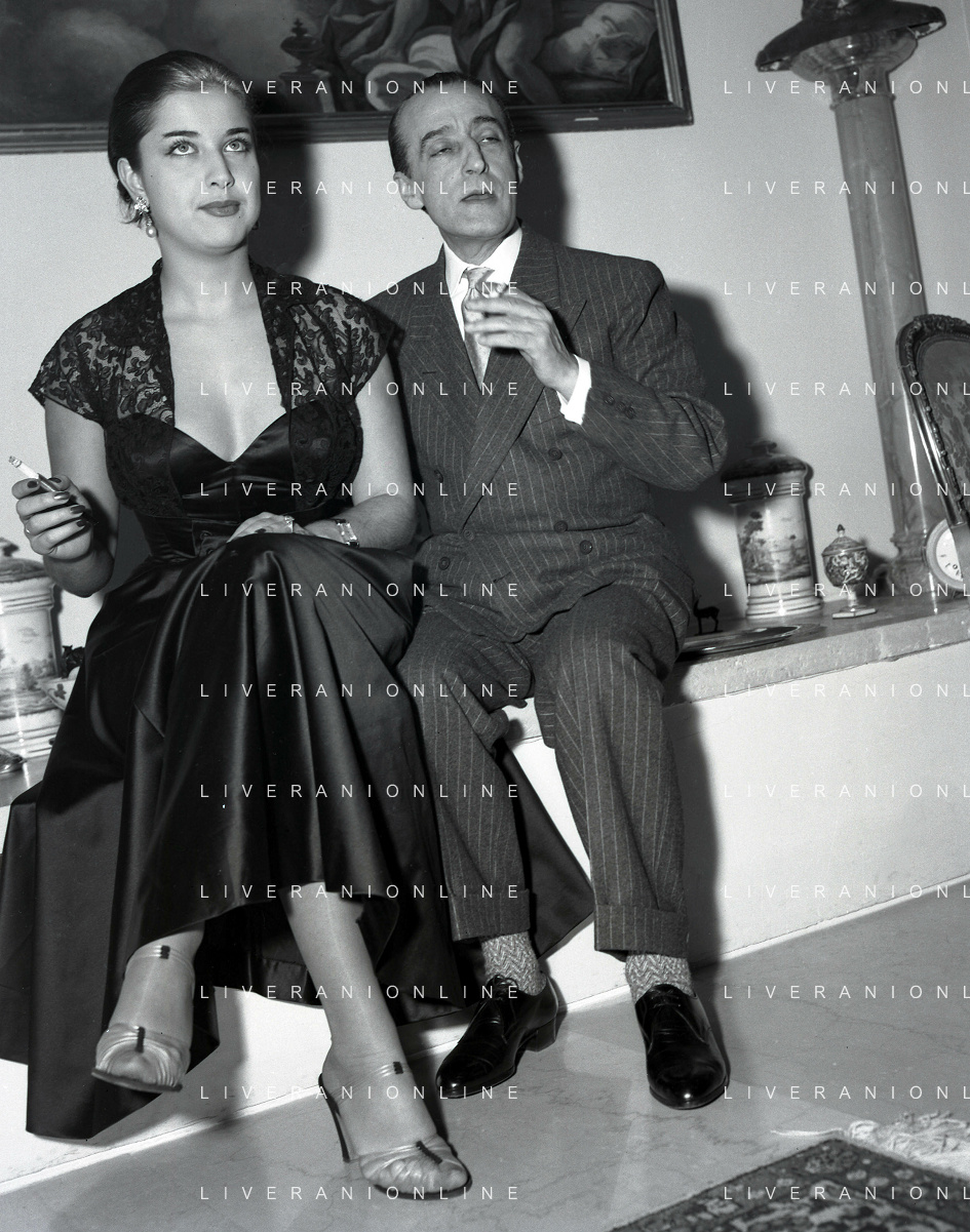COL-RETROSPETTIVA ANTONIO DE CURTIS IN ARTE TOTO' NELLA FOTO ANTONIO DE CURTIS IN ARTE TOTO'CON FRANCA FALDINI IL GIORNO DEL FIDANZAMENTO A ROMA FOTO SANDRO VESPASIANI-AG ALDO LIVERANI SAS