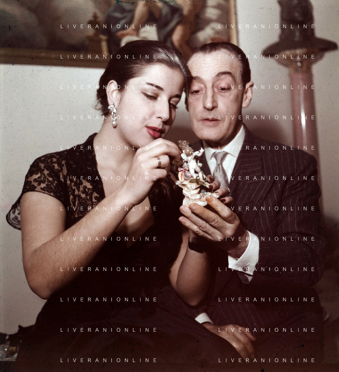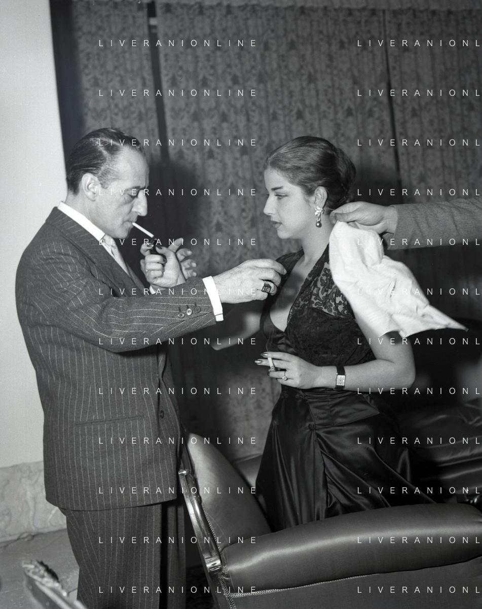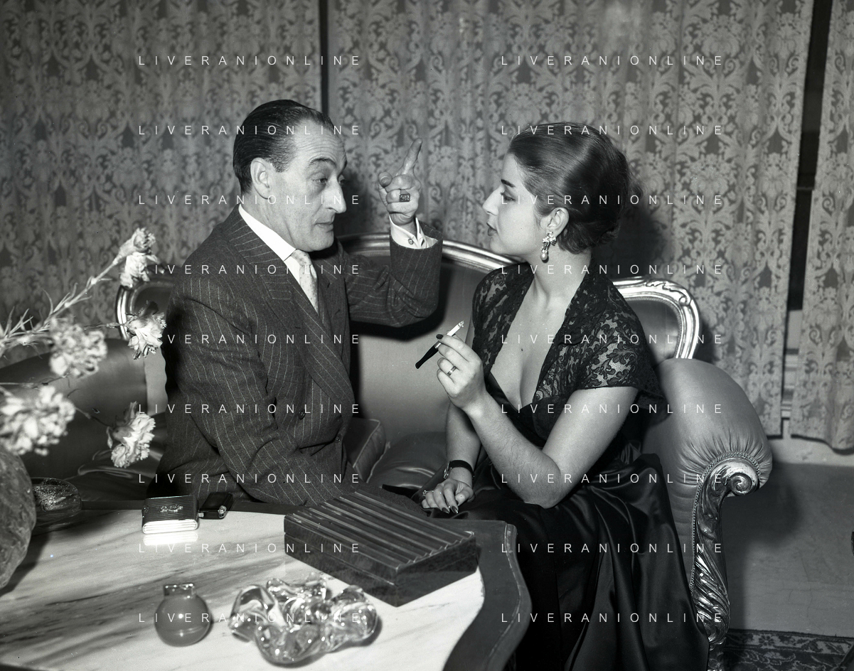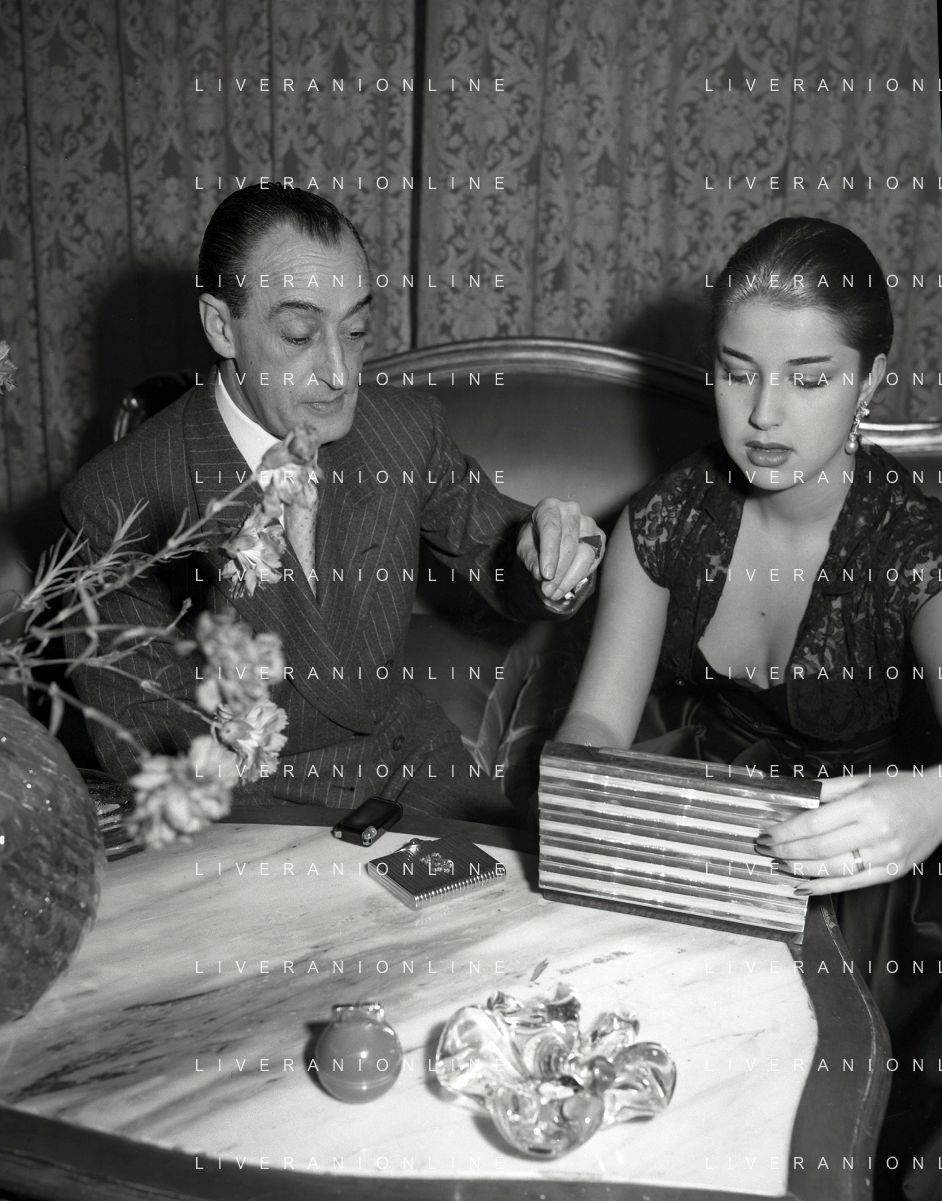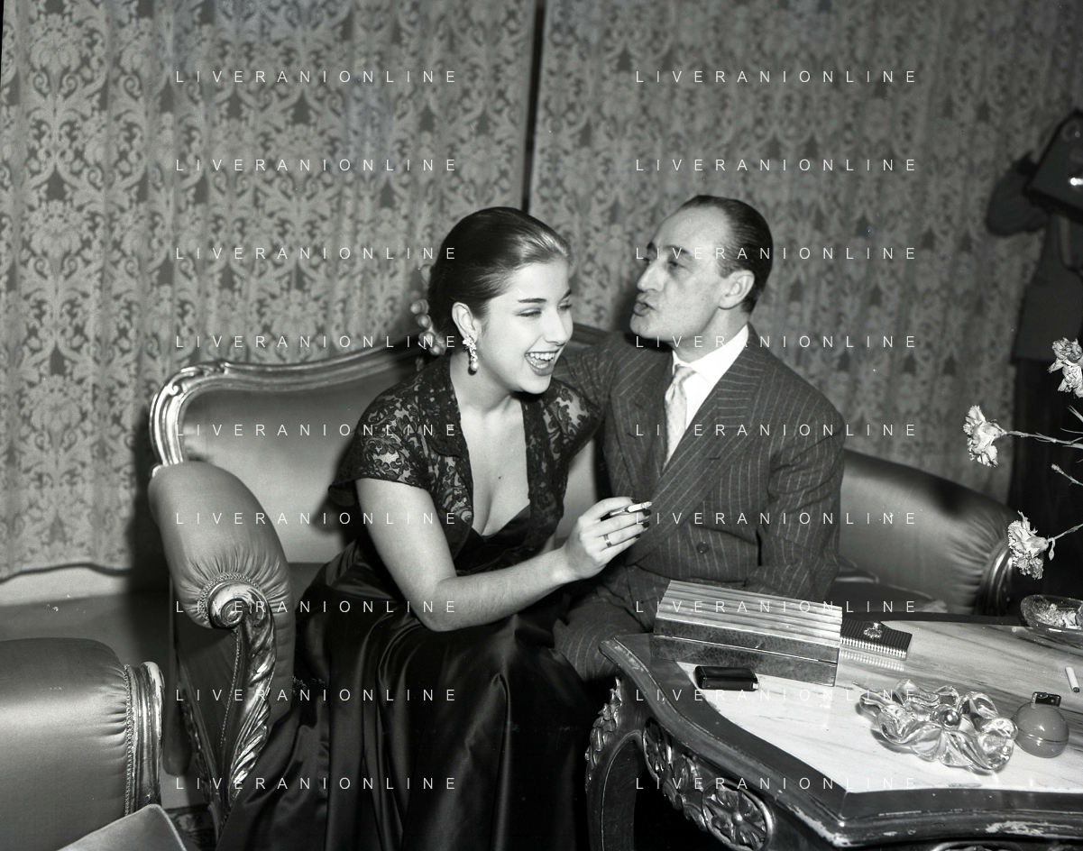 COL-RETROSPETTIVA ANTONIO DE CURTIS IN ARTE TOTO' NELLA FOTO ANTONIO DE CURTIS IN ARTE TOTO'CON FRANCA FALDINI IL GIORNO DEL FIDANZAMENTO A ROMA FOTO SANDRO VESPASIANI-AG ALDO LIVERANI SAS