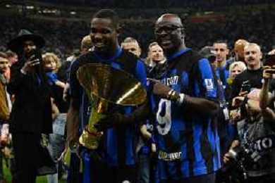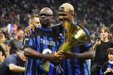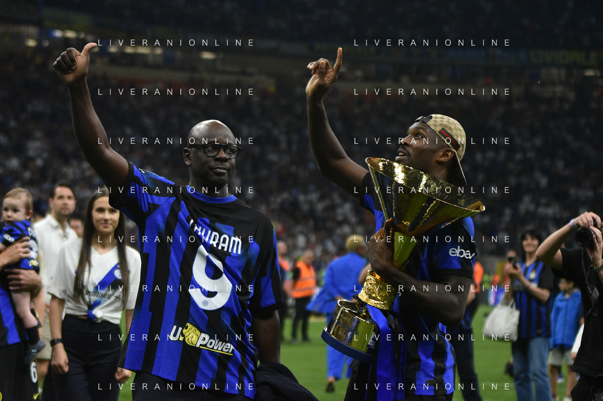 Inter vs Lazio nella foto Marcus Thuram (Inter) con il padre Lilian Thuram a DX Milano 19-05-2024 Stadio Giuseppe Meazza - San Siro Campionato Serie A TIM - 37a giornata foto Roberto Garavaglia/Agenzia Aldo Liverani sas