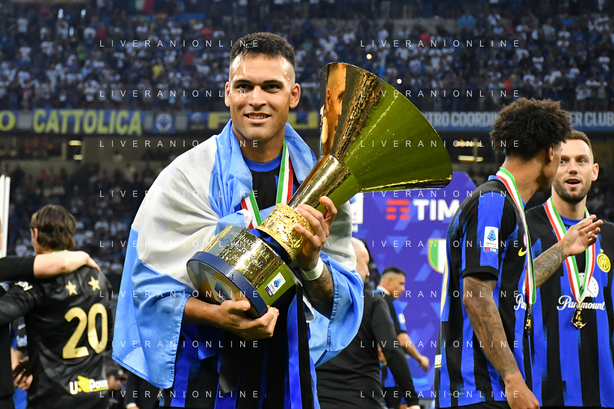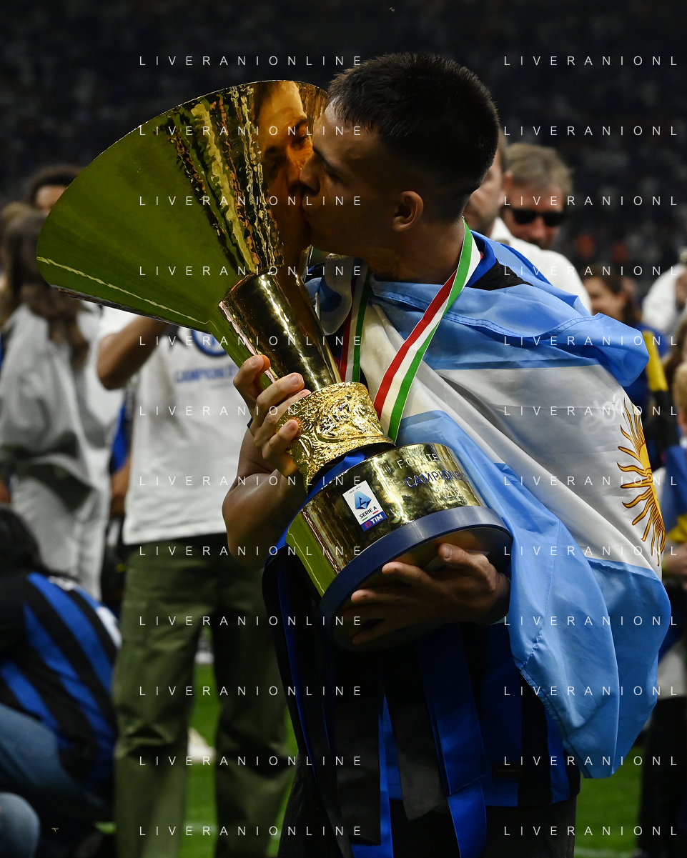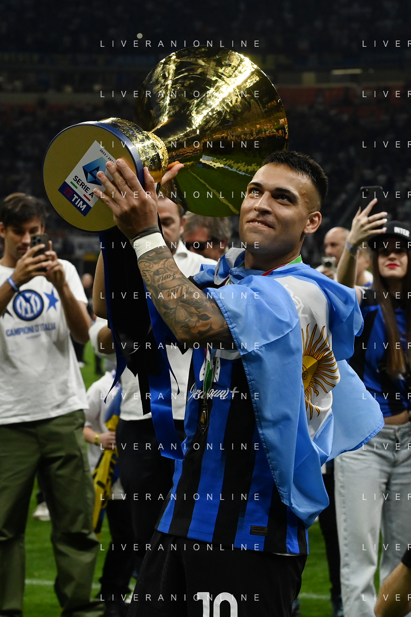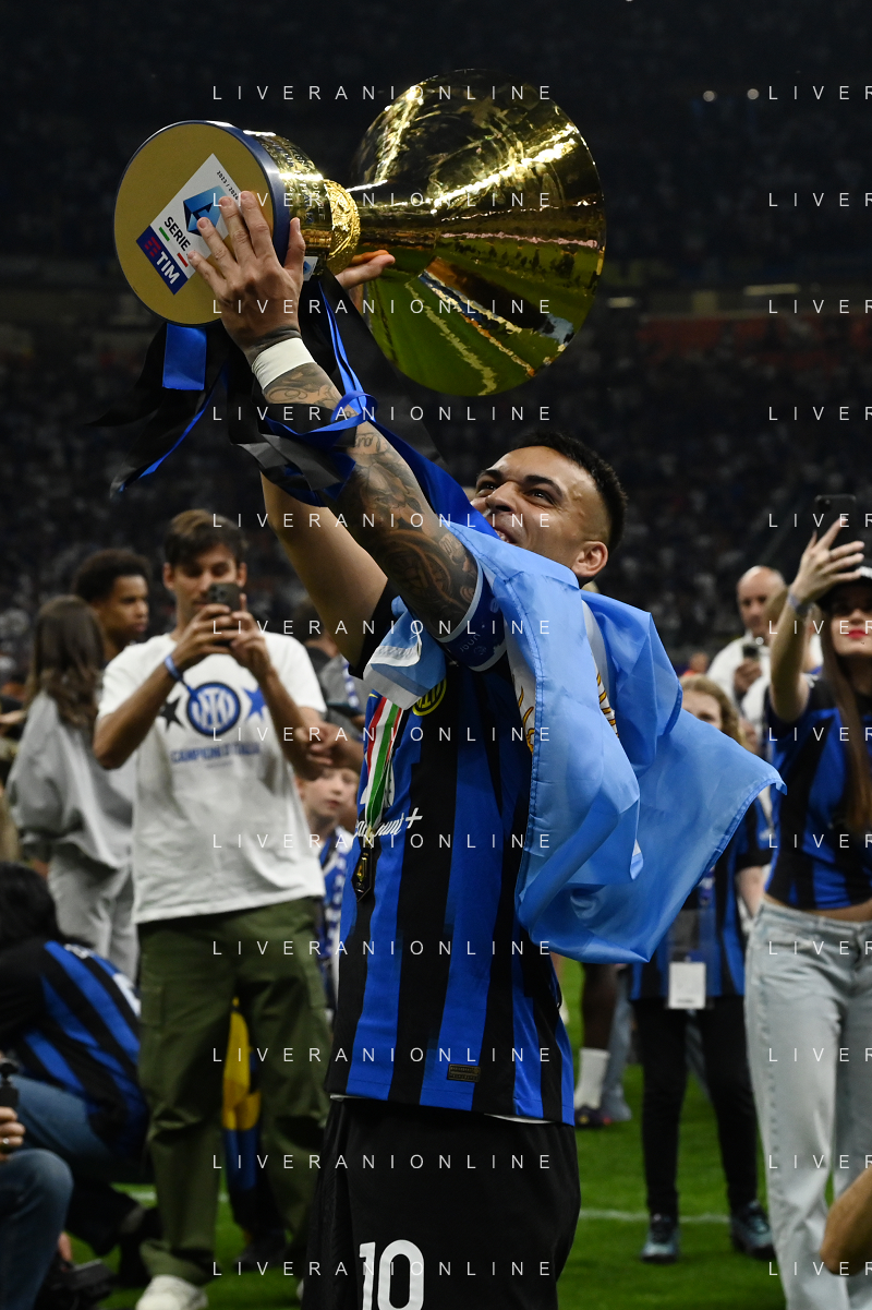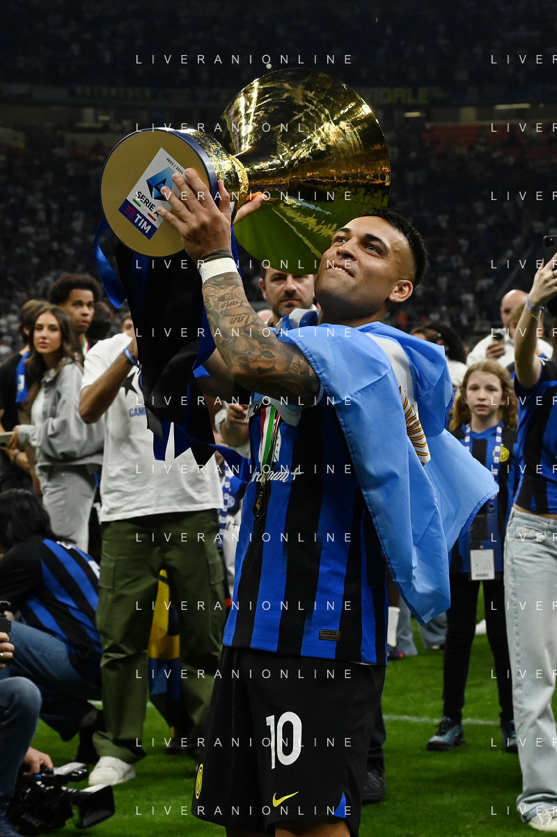 Inter-Lazio Campionato di calcio Serie A 2023/2024 - Stadio Giuseppe Meazza Nella foto: Lautaro Martinez alza il trofeo dello scudetto foto andrea rosito-ag aldo liverani sas