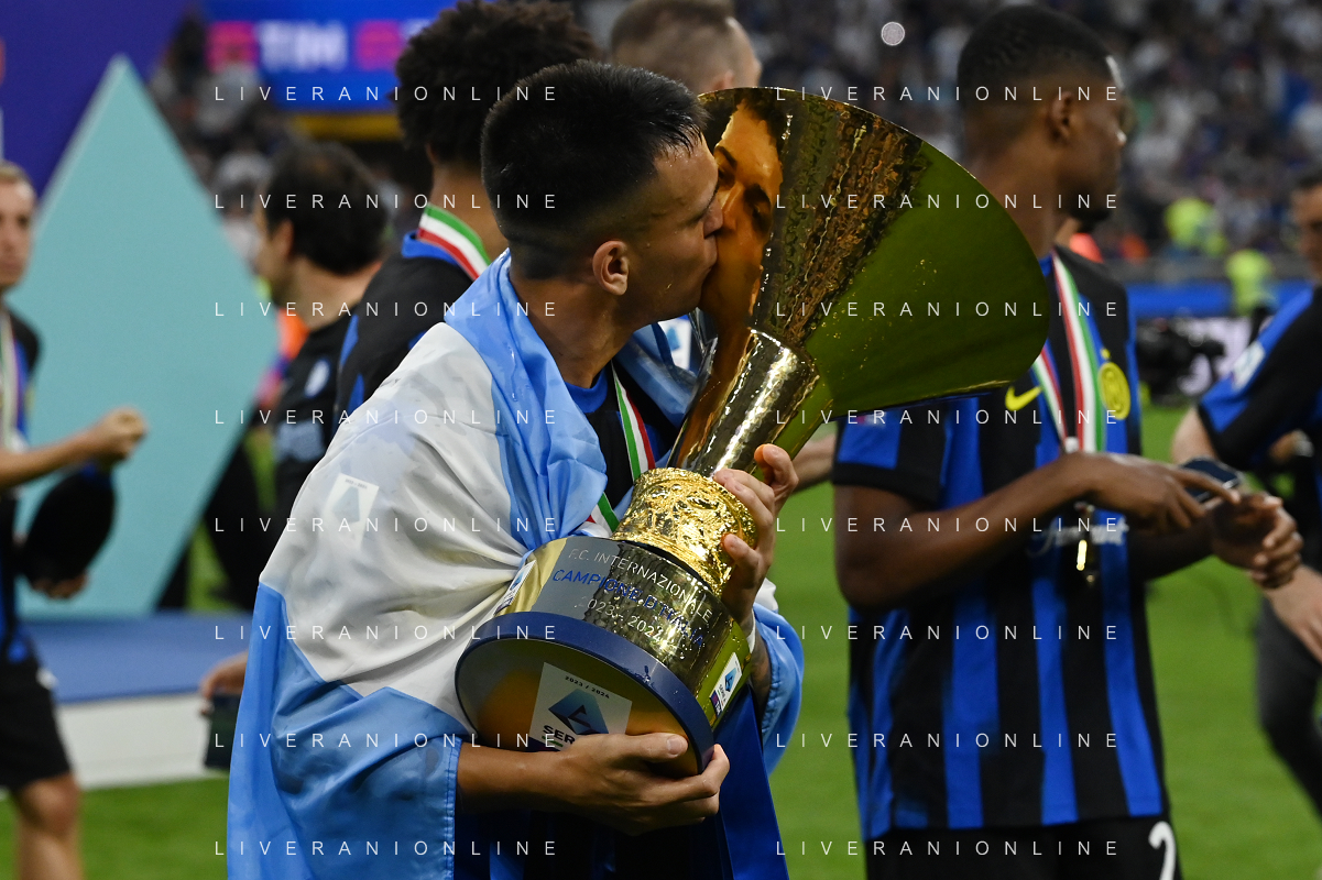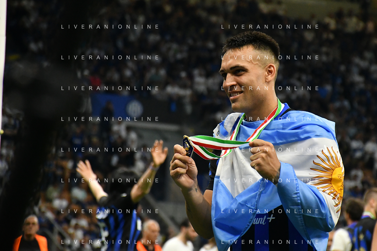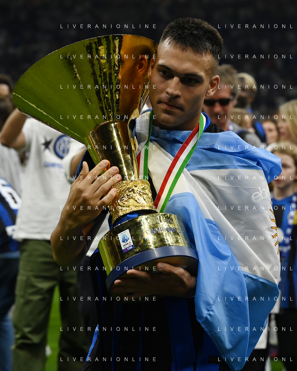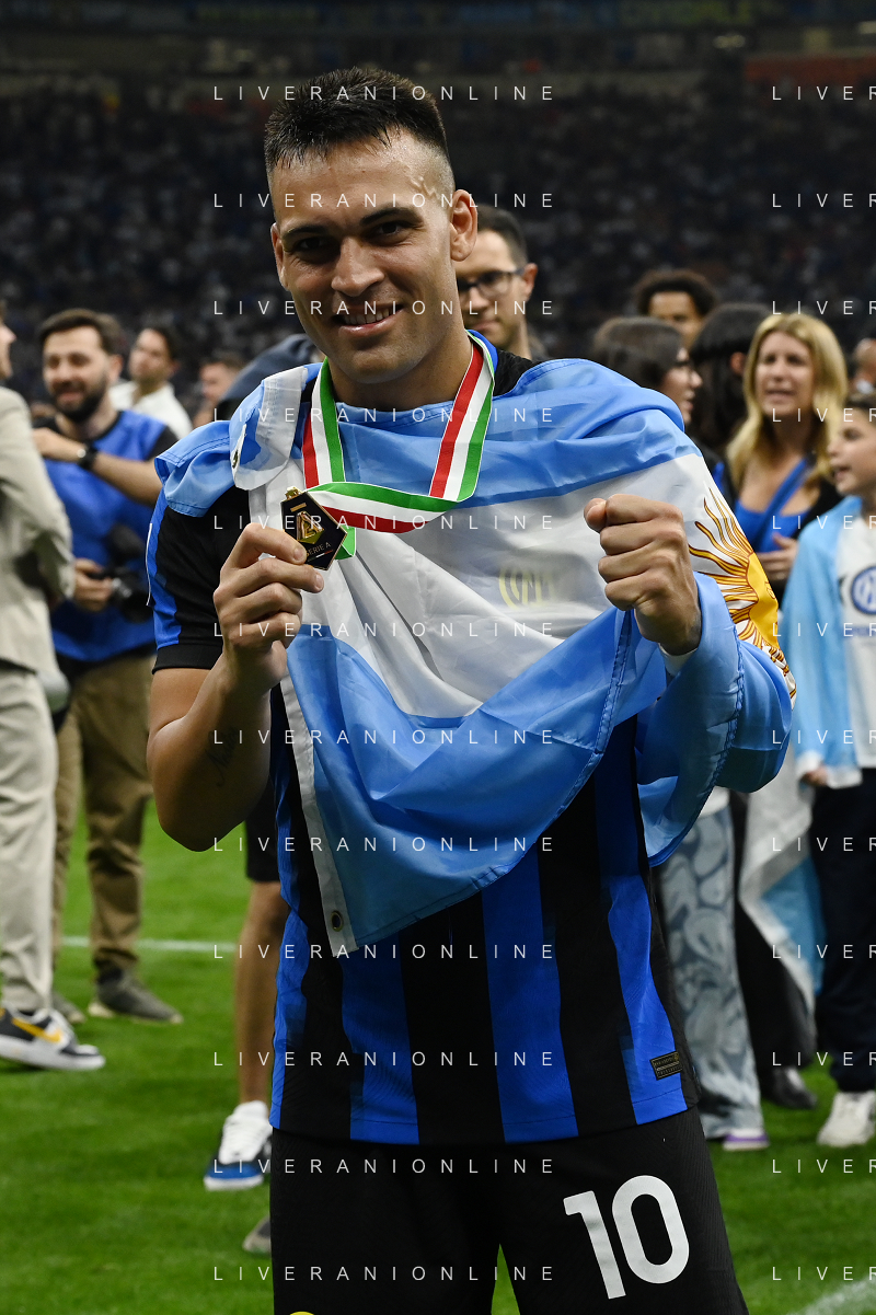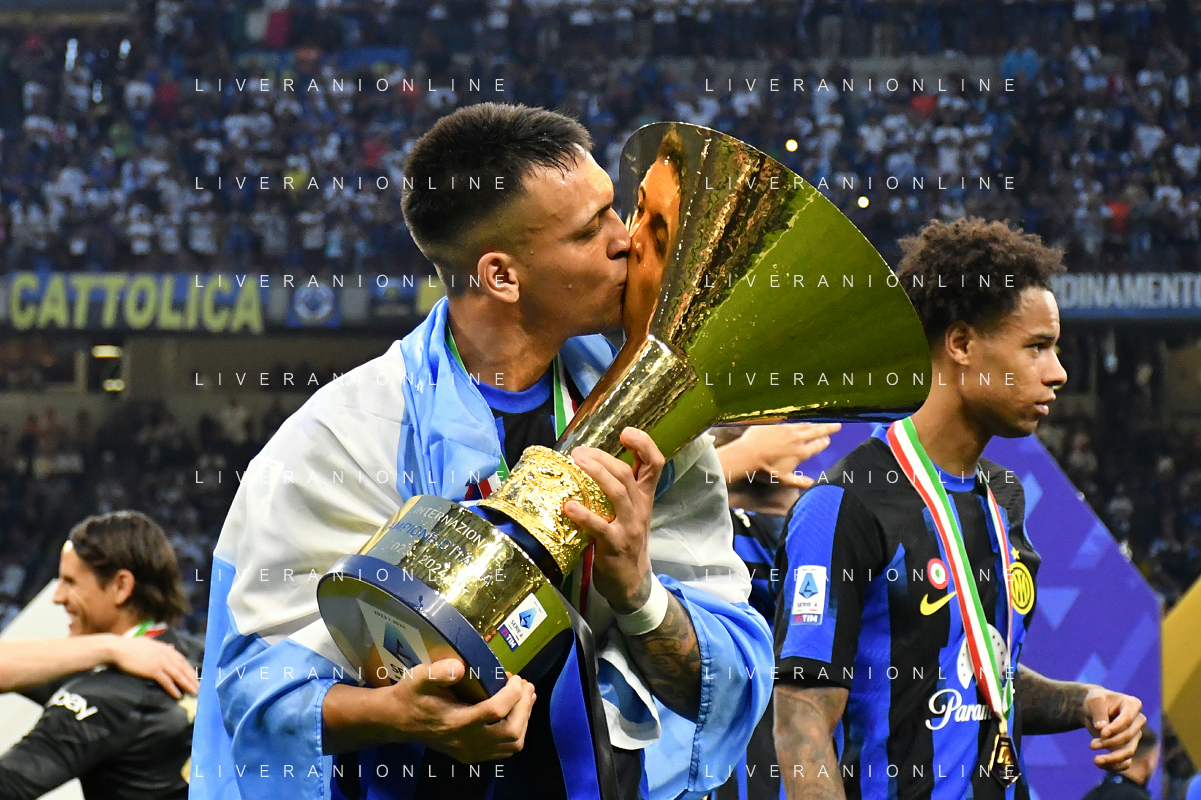Inter-Lazio Campionato di calcio Serie A 2023/2024 - Stadio Giuseppe Meazza Nella foto: Lautaro Martinez alza il trofeo dello scudetto foto andrea rosito-ag aldo liverani sas
