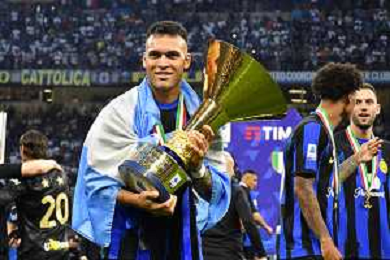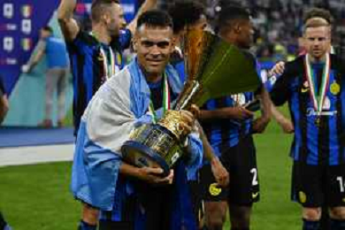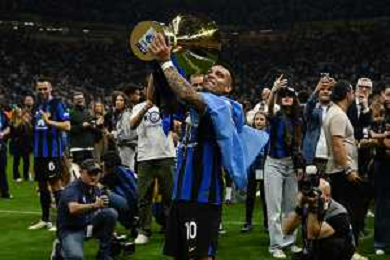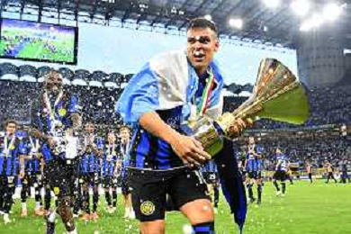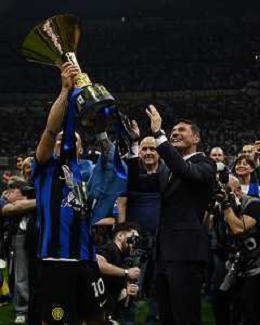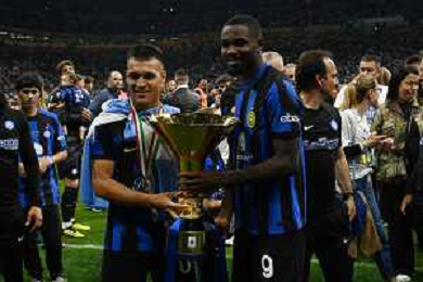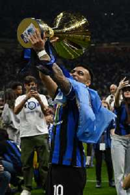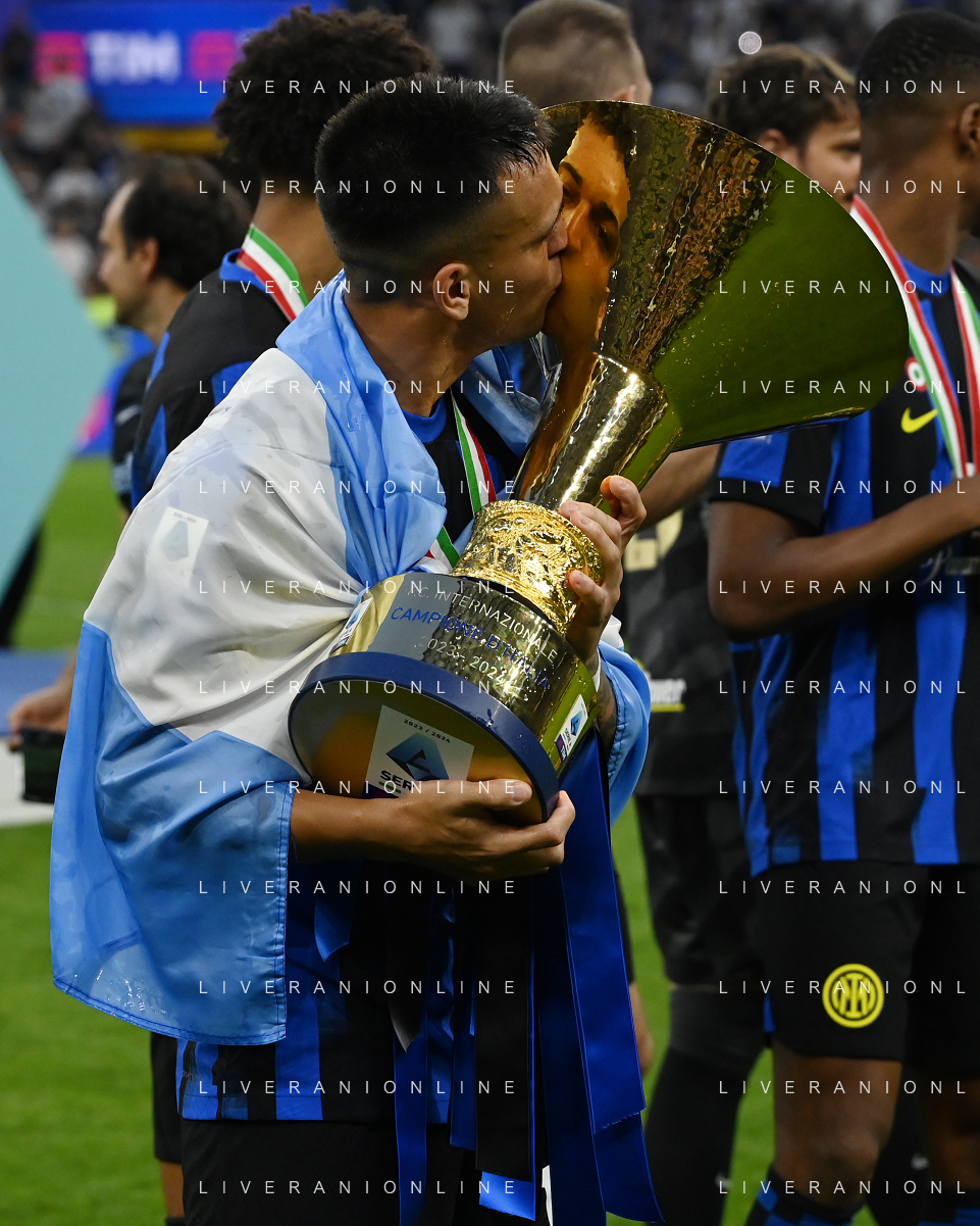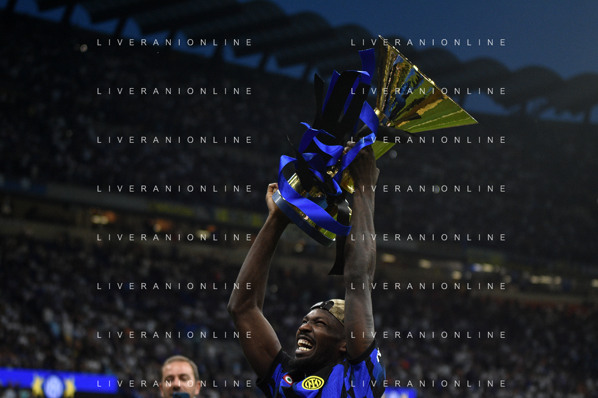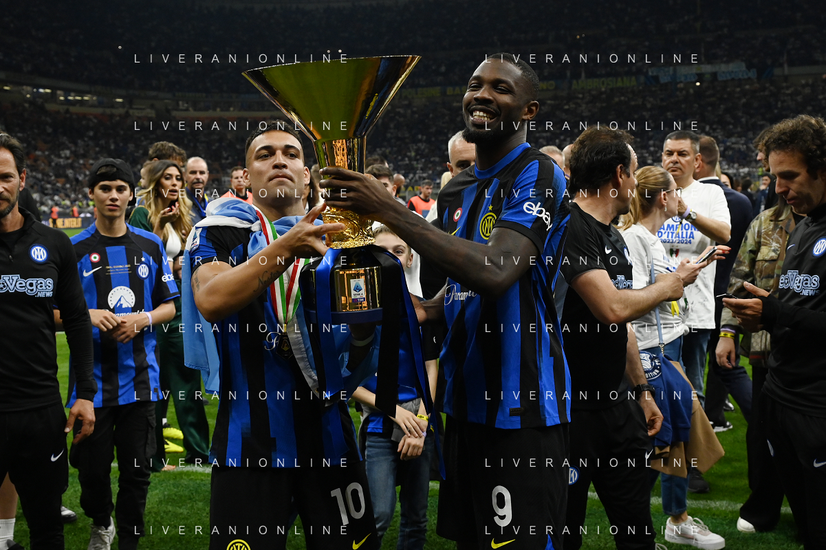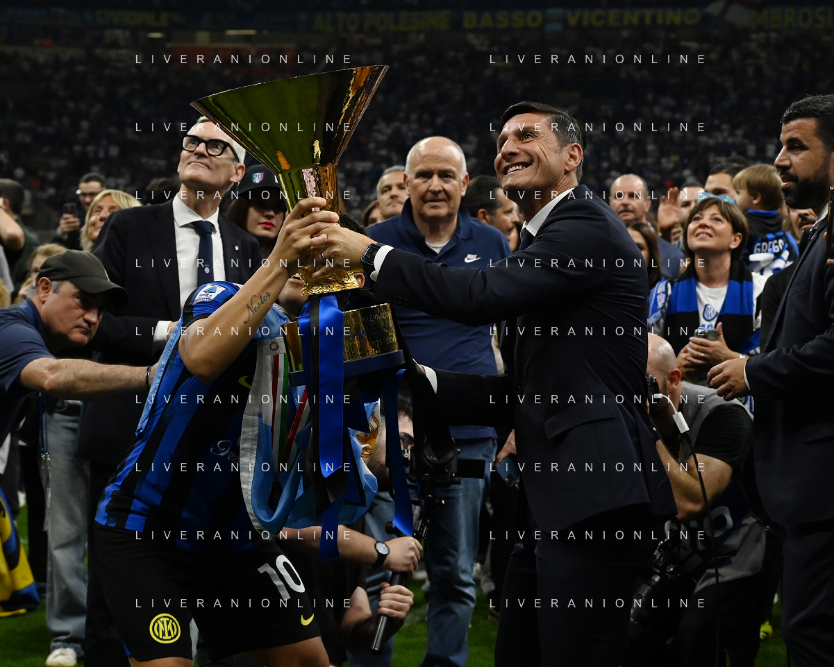 Inter-Lazio Campionato di calcio Serie A 2023/2024 - Stadio Giuseppe Meazza Nella foto: Lautaro Martinez alza il trofeo dello scudetto foto andrea rosito-ag aldo liverani sas