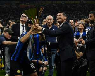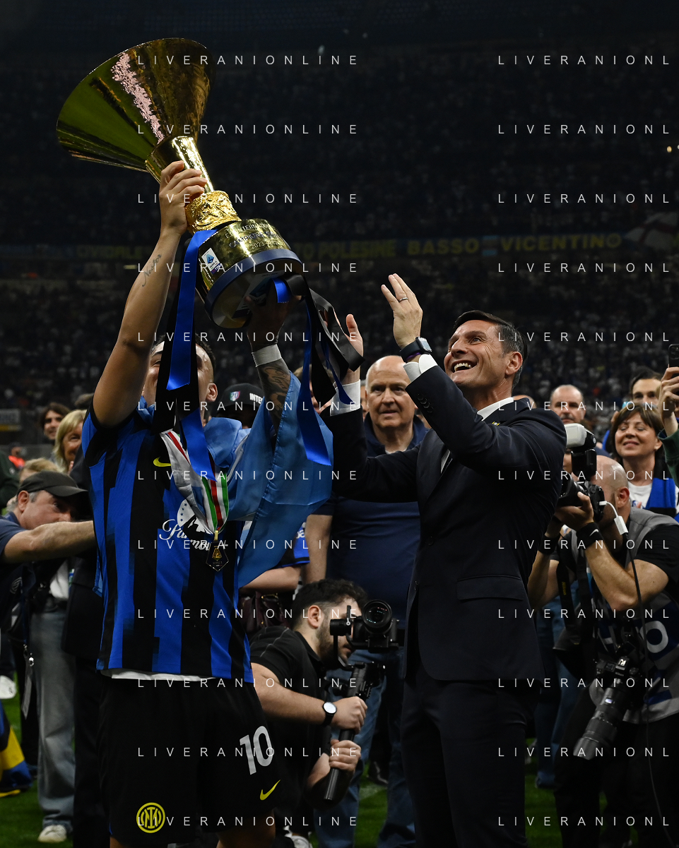 Inter vs Lazio nella foto Lautaro Martinez (Inter) SX e Javier Zanetti vicepresidente Inter DX Milano 19-05-2024 Stadio Giuseppe Meazza - San Siro Campionato Serie A TIM - 37a giornata foto Roberto Garavaglia/Agenzia Aldo Liverani sas