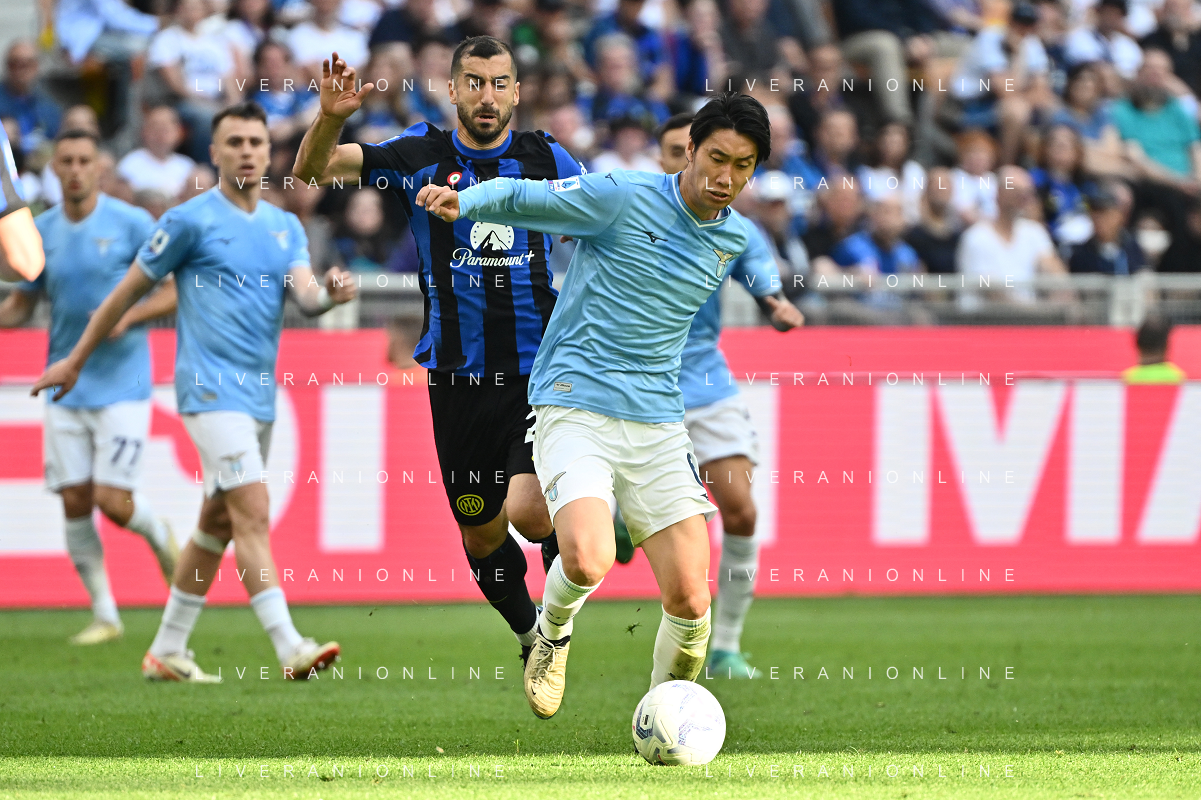 Inter vs Lazio nella foto Henrikh Mkhitaryan (Inter) e Daichi Kamada (Lazio) Milano 19-05-2024 Stadio Giuseppe Meazza - San Siro Campionato Serie A TIM - 37a giornata foto Roberto Garavaglia/Agenzia Aldo Liverani sas