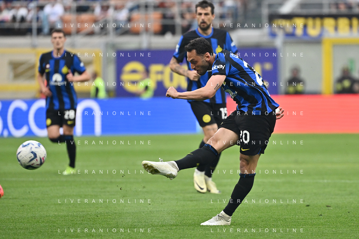 Inter vs Lazio nella foto Hakan Calhanoglu (Inter) al tiro Milano 19-05-2024 Stadio Giuseppe Meazza - San Siro Campionato Serie A TIM - 37a giornata foto Roberto Garavaglia/Agenzia Aldo Liverani sas