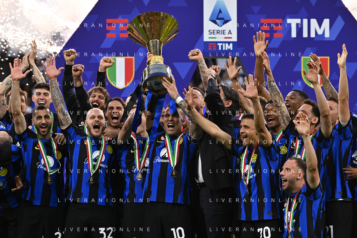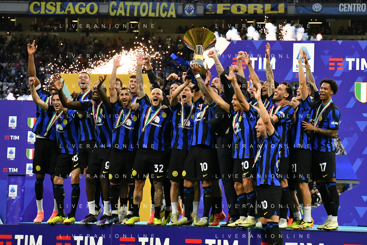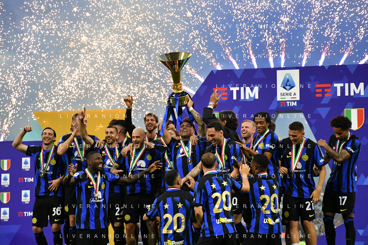 Inter-Lazio Campionato di calcio Serie A 2023/2024 - Stadio Giuseppe Meazza Nella foto: L'inter alza la coppa dello Scudetto foto andrea rosito-ag aldo liverani sas