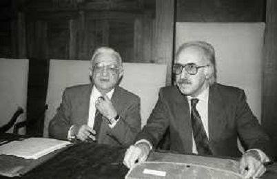 NEG-RETROSPETTIVA ANTONIO RUBERTI POLITICO NELLA FOTO ANTONIO RUBERTI CON IL RETTORE DELL'UNIVERSITA' CATTOLICA DI MILANO ADRIANO BAUSOLA NELL'ANNO 1987 AG ALDO LIVERANI SAS