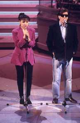 DIAP-RETROSPETTIVA ALEANDRO BALDI CANTANTE NELLA FOTO ALEANDRO BALDI CON FRANCESCA ALOTTA AL FESTIVAL DI SANREMO NELL'ANNO 1992 AG ALDO LIVERANI SAS