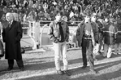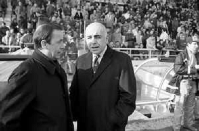 Neg- RETROSPETTIVA ADRIANO GALLIANI , Dirigente Sportivo Calcio Nella foto ADRIANO GALLIANI amministratore delegato MILAN nell'anno 1993-1994 in tribuna con il calciatore Marco Van Basten AG ALDO LIVERANI