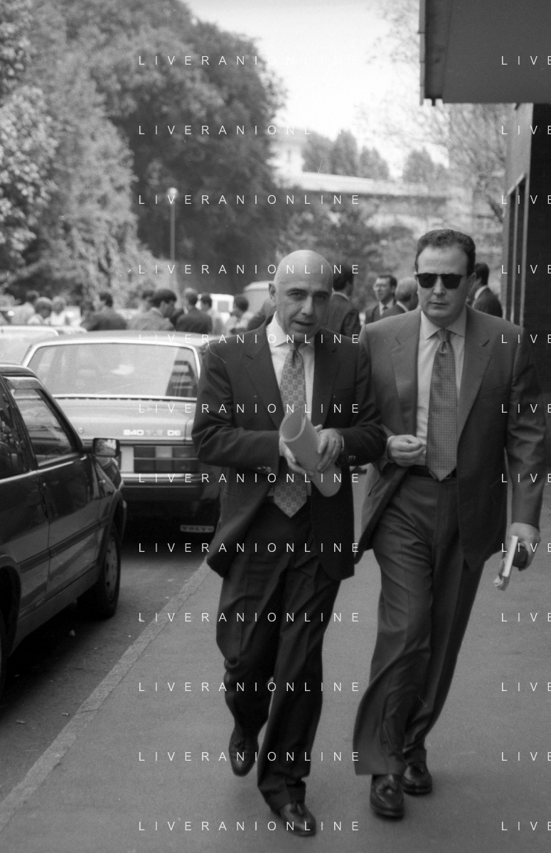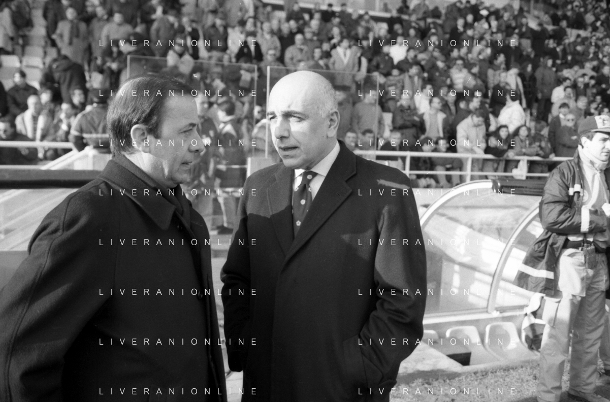 Neg- RETROSPETTIVA ADRIANO GALLIANI , Dirigente Sportivo Calcio Nella foto ADRIANO GALLIANI amministratore delegato MILAN nell'anno 1994 con il giornalista Franco Ordine AG ALDO LIVERANI