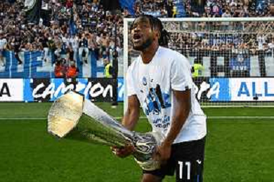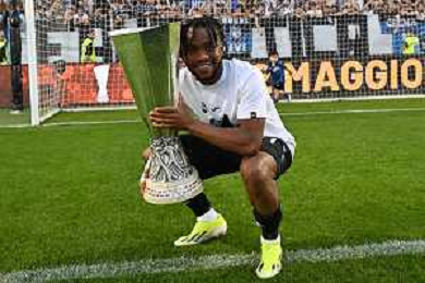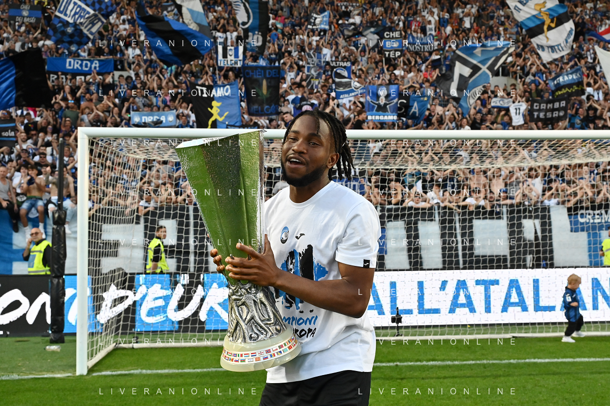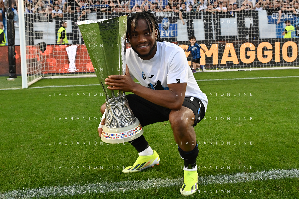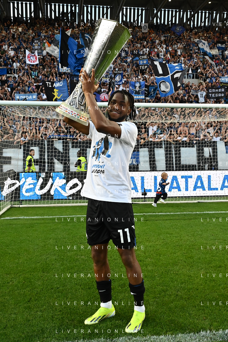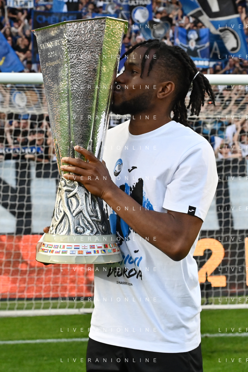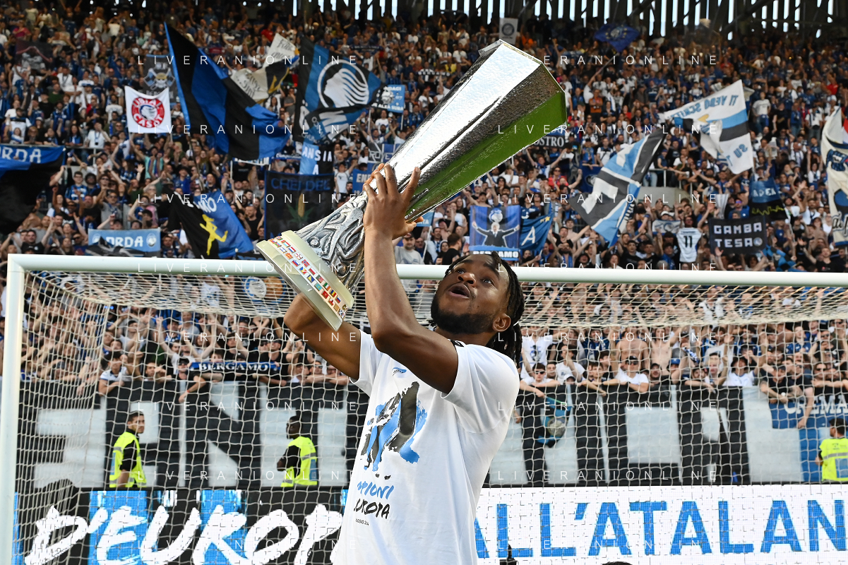 TVRG Atalanta vs Torino nella foto Ademola Lookman (Atalanta) a fine gara con la coppa trofeo europa league Bergamo 26-05-2024 Gewiss Stadium Campionato Serie A TIM - 38a giornata foto Roberto Garavaglia/Agenzia Aldo Liverani sas/ AGENZIA ALDO LIVERANI SAS