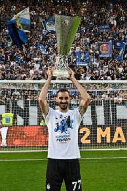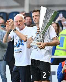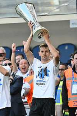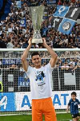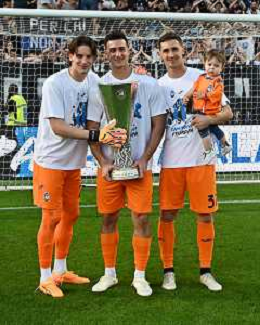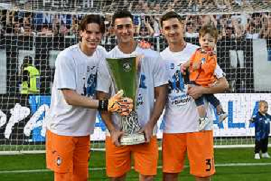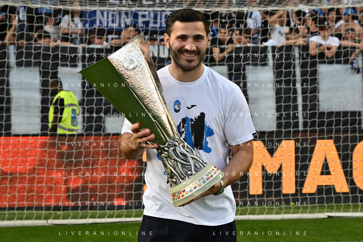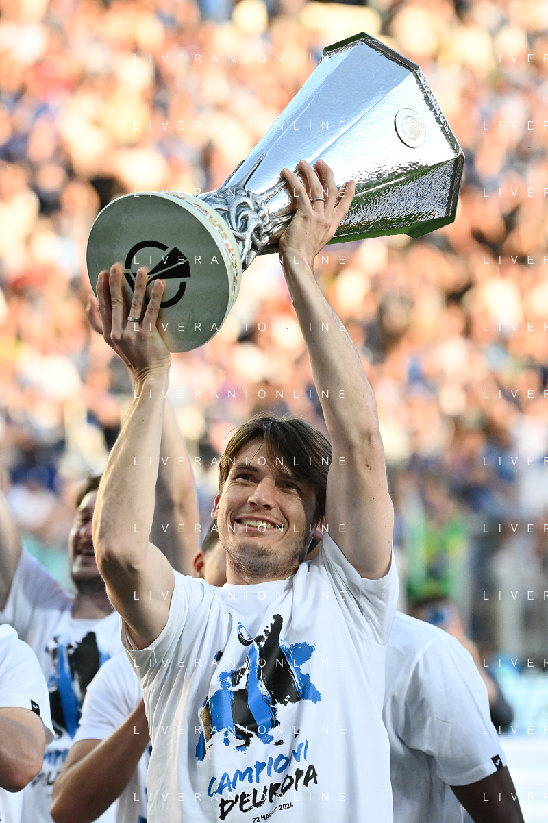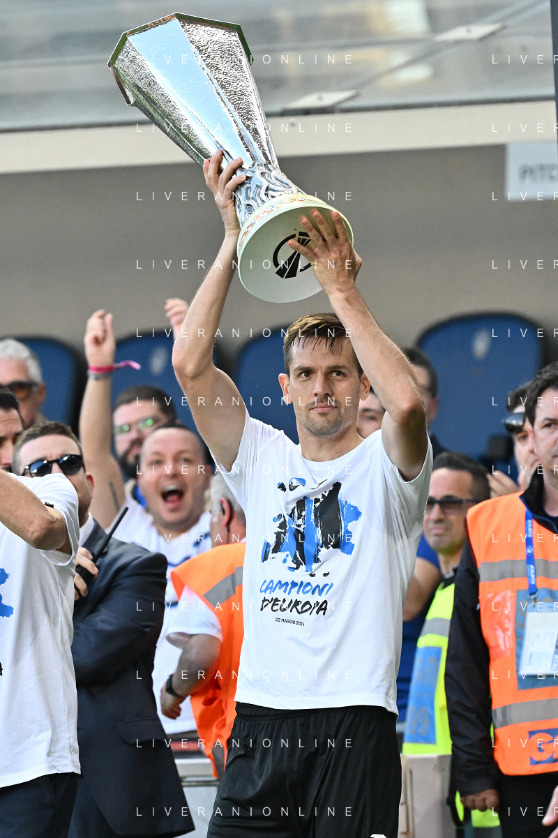 TVRG Atalanta vs Torino nella foto da SX Berat Djimsiti (Atalanta), Mario Pasalic (Atalanta) e Marten de Roon (Atalanta) a fine gara con la coppa trofeo europa league Bergamo 26-05-2024 Gewiss Stadium Campionato Serie A TIM - 38a giornata foto Roberto Garavaglia/Agenzia Aldo Liverani sas/ AGENZIA ALDO LIVERANI SAS