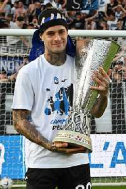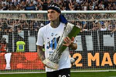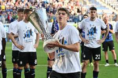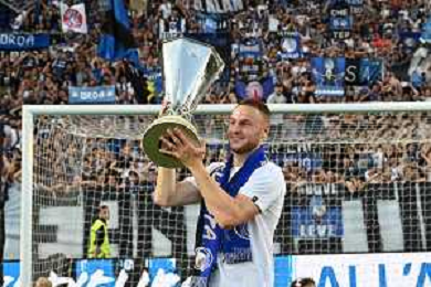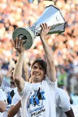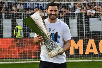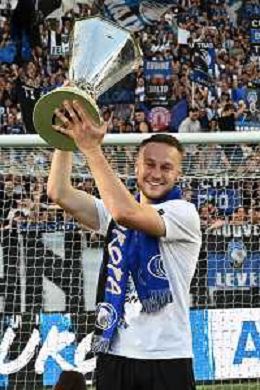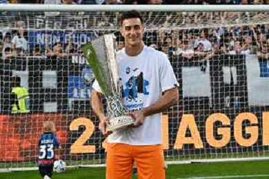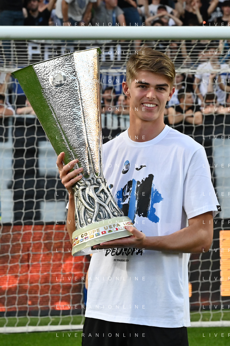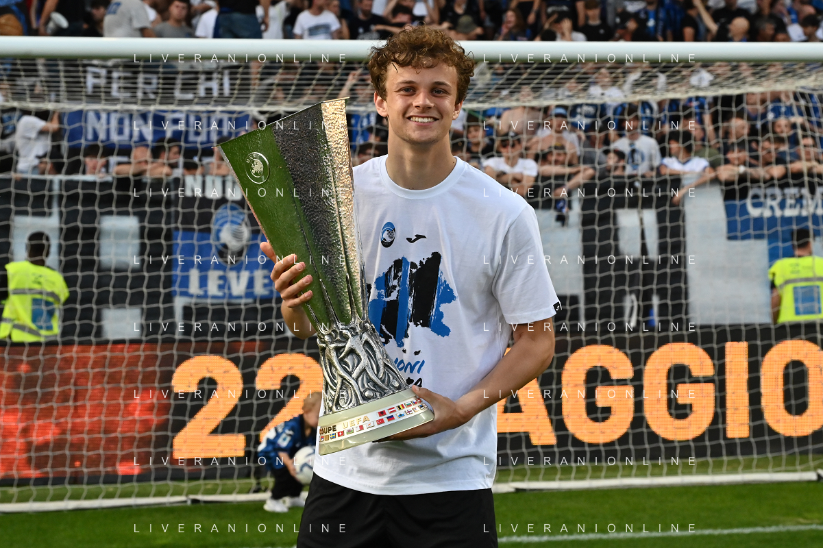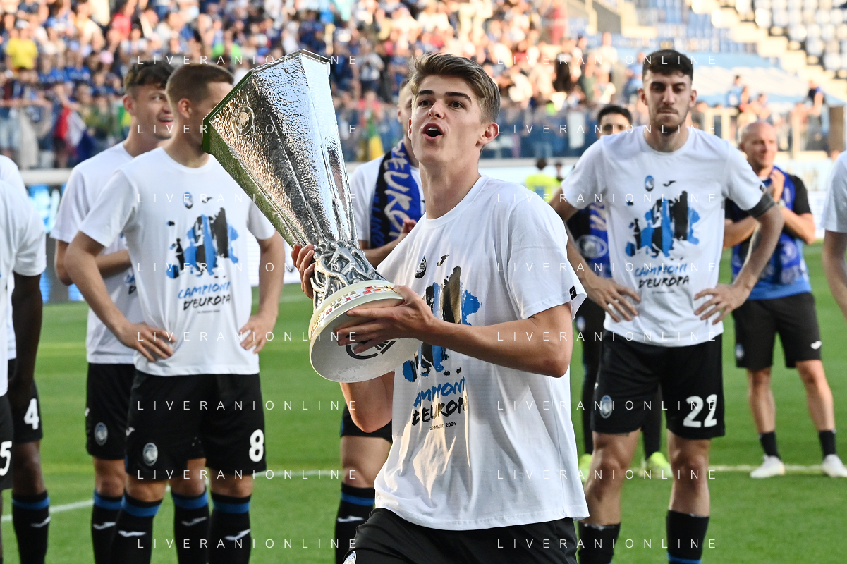 TVRG Atalanta vs Torino nella foto Gianluca Scamacca (Atalanta) a fine gara con la coppa trofeo europa league Bergamo 26-05-2024 Gewiss Stadium Campionato Serie A TIM - 38a giornata foto Roberto Garavaglia/Agenzia Aldo Liverani sas/ AGENZIA ALDO LIVERANI SAS