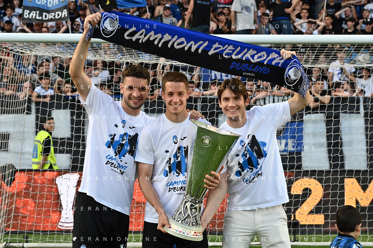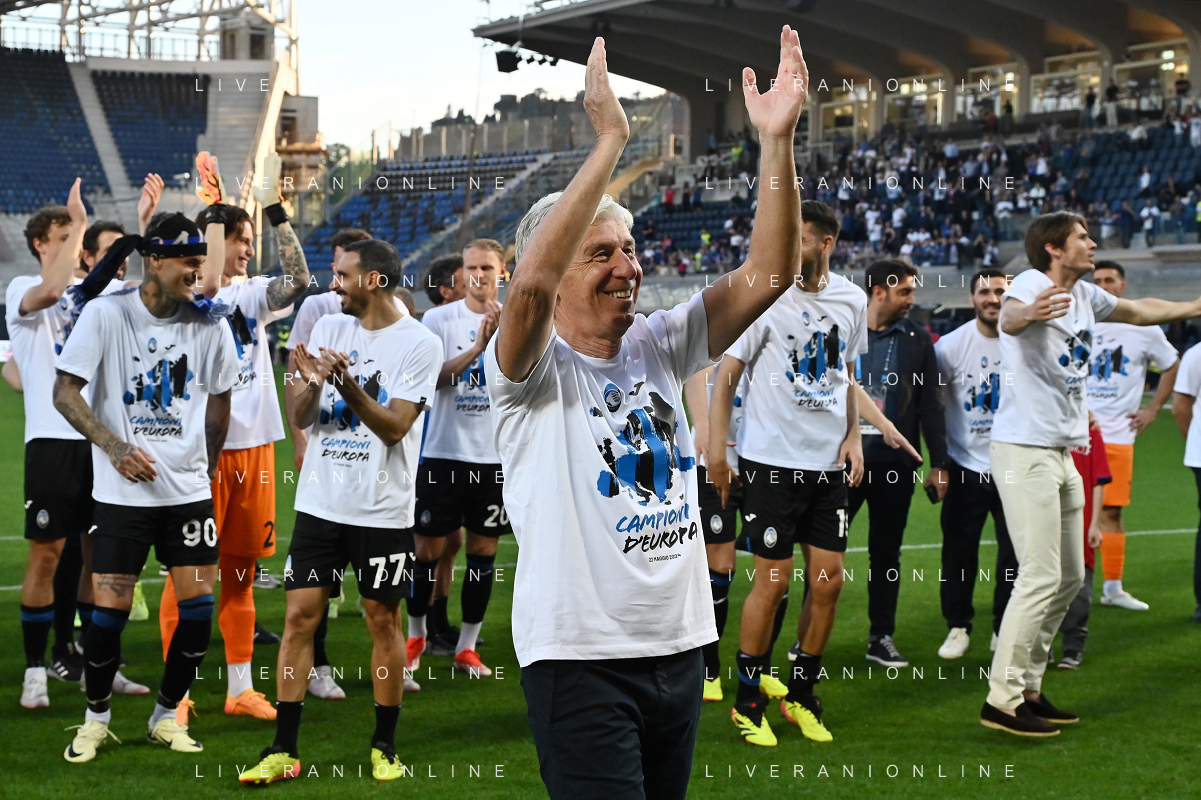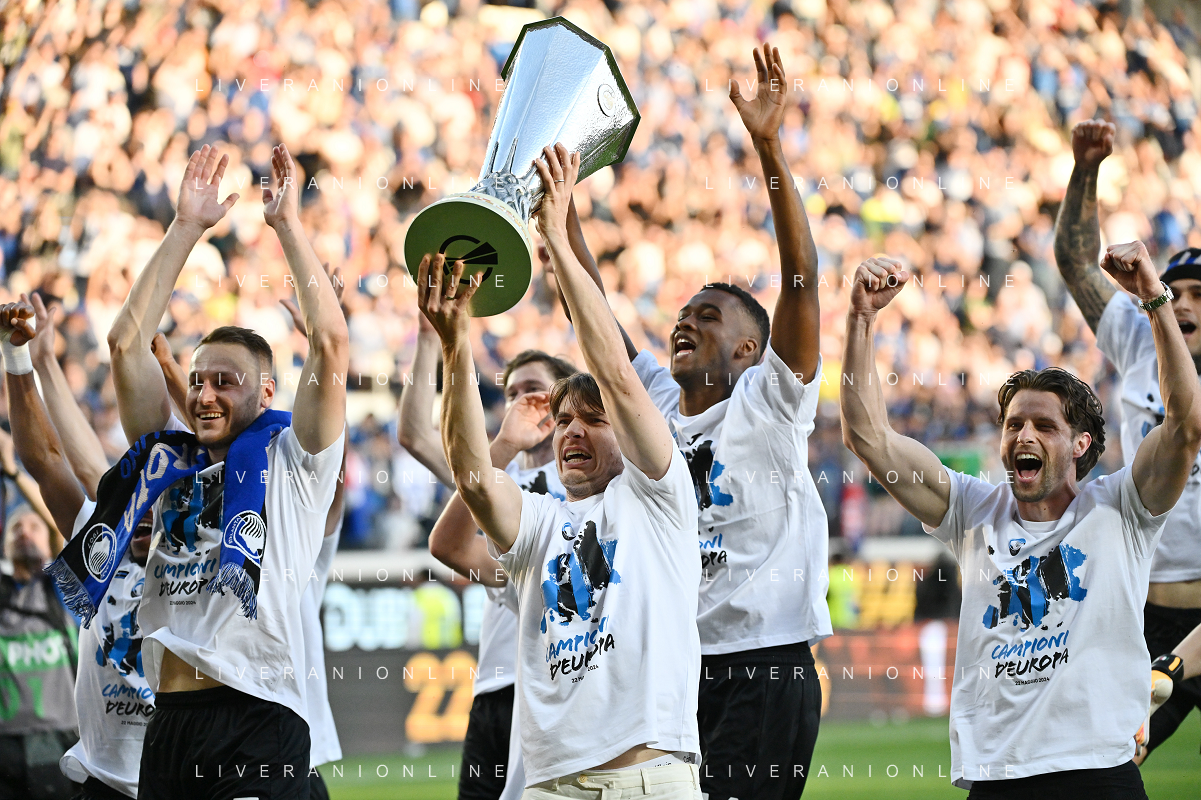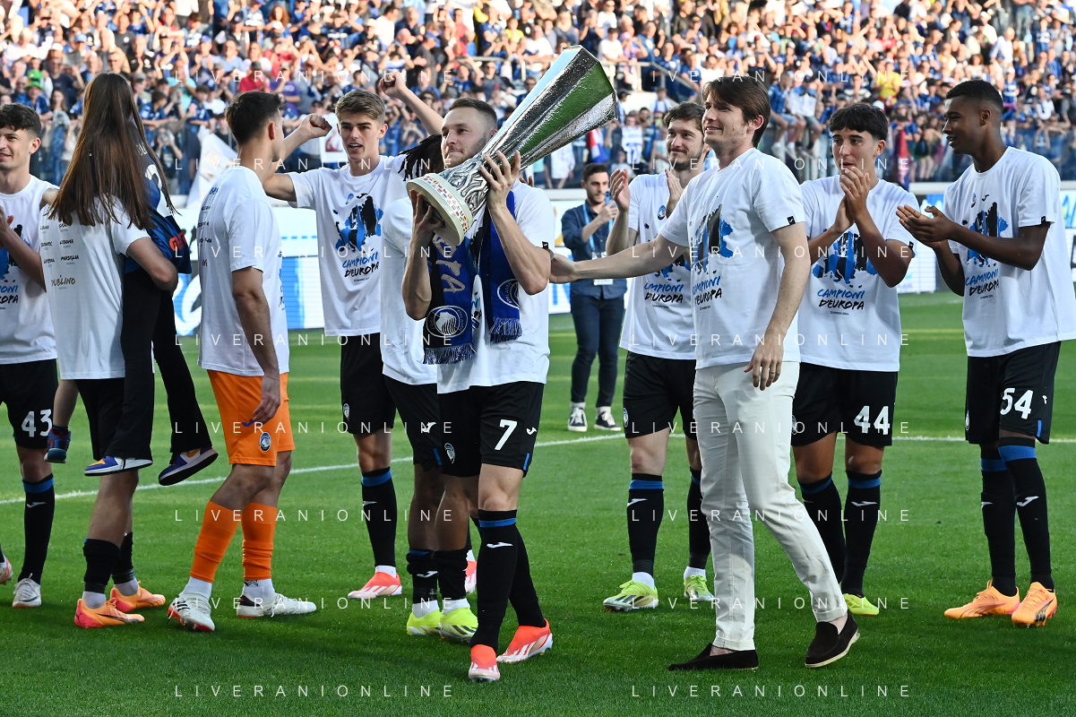 TVRG Atalanta vs Torino nella foto i giocatori dell'Atalanta festeggiano la vittoria della UEFA Europa League Bergamo 26-05-2024 Gewiss Stadium Campionato Serie A TIM - 38a giornata foto Roberto Garavaglia/Agenzia Aldo Liverani sas / AGENZIA ALDO LIVERANI SAS