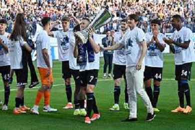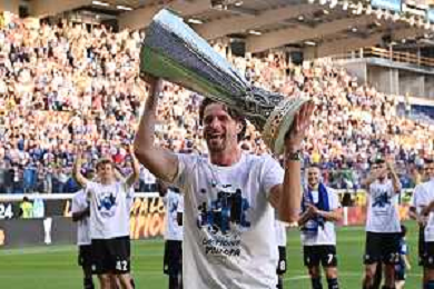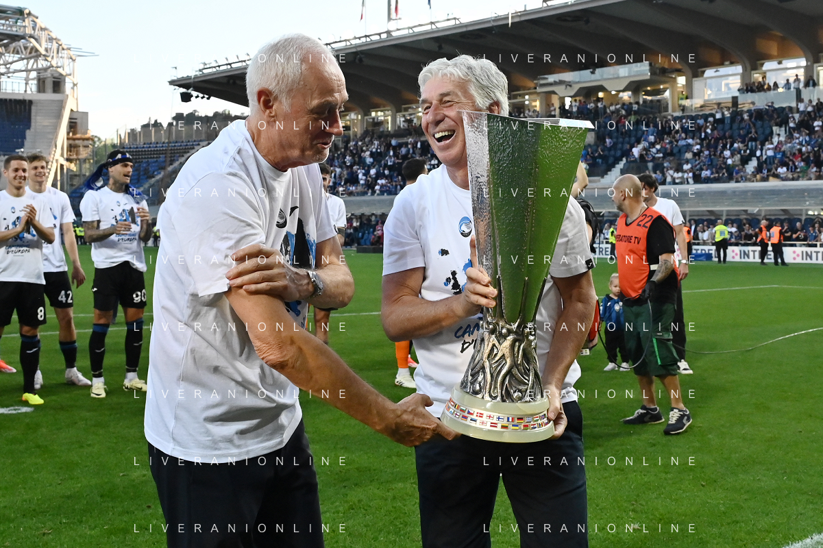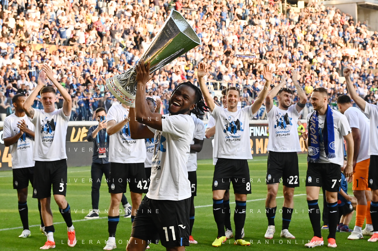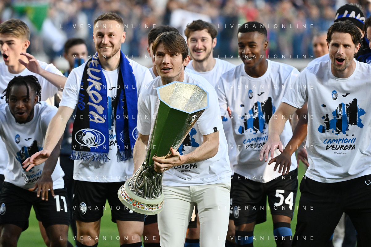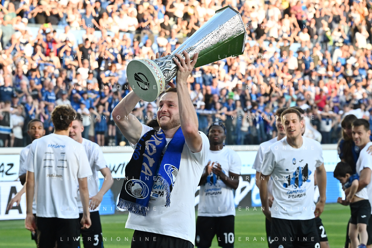 TVRG Atalanta vs Torino nella foto i giocatori dell'Atalanta festeggiano la vittoria della UEFA Europa League Bergamo 26-05-2024 Gewiss Stadium Campionato Serie A TIM - 38a giornata foto Roberto Garavaglia/Agenzia Aldo Liverani sas / AGENZIA ALDO LIVERANI SAS