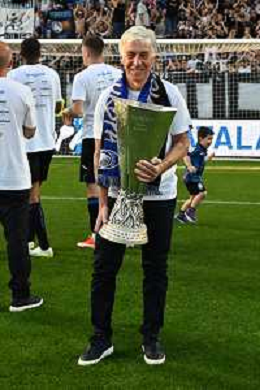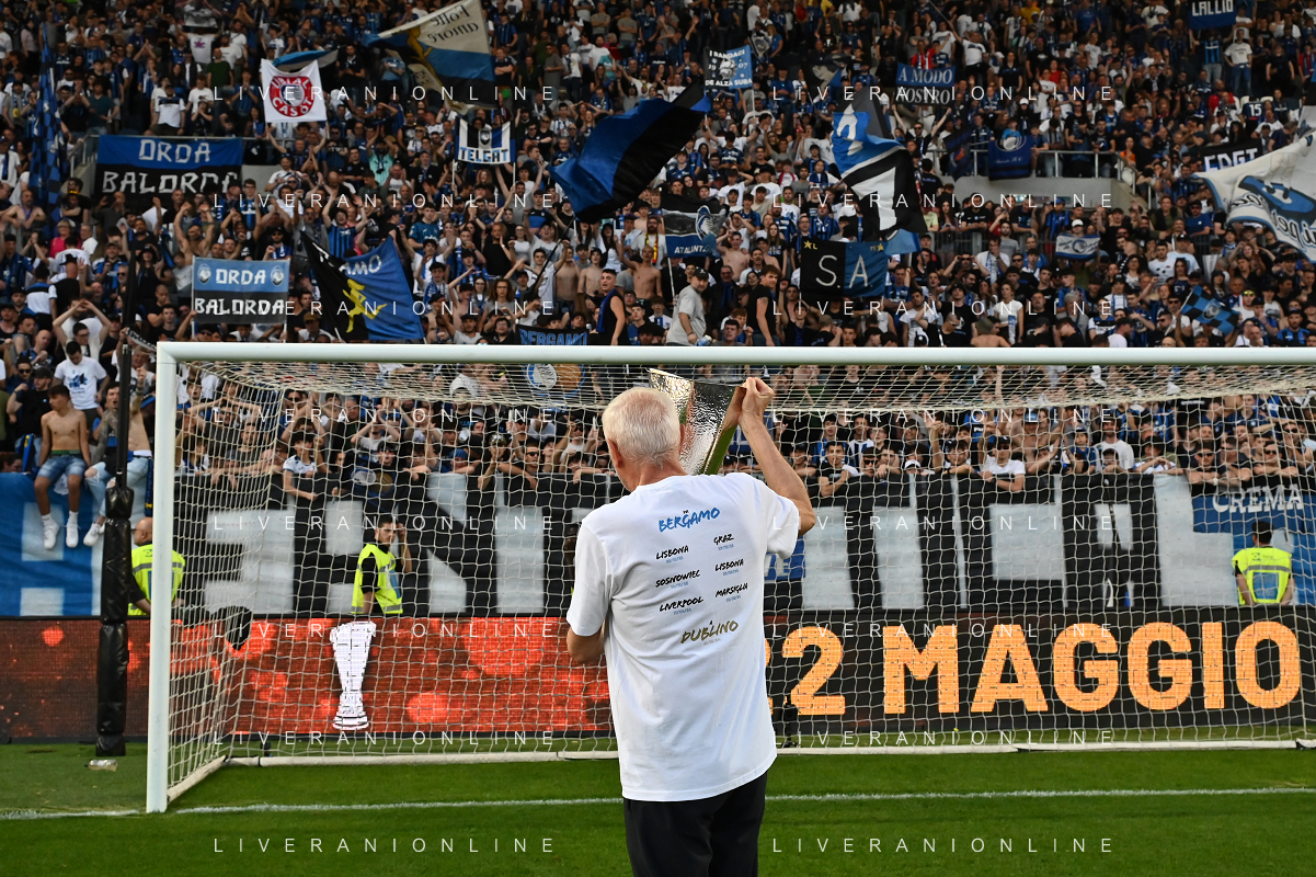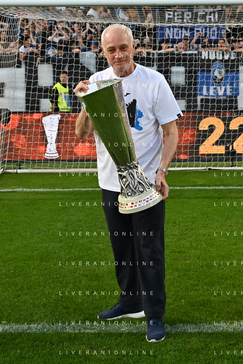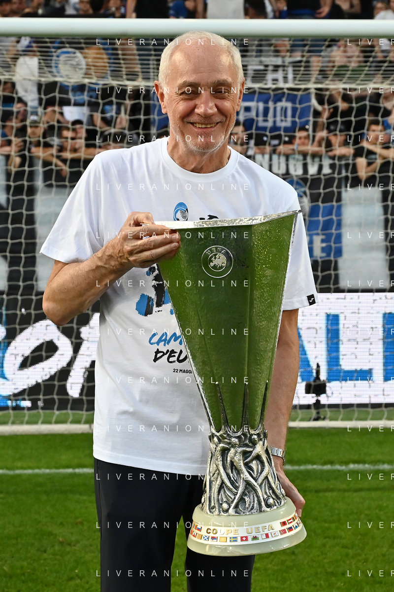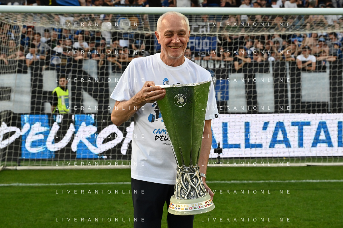 TVRG Atalanta vs Torino nella foto Antonio Percassi presidente Atalanta a fine gara con la coppa trofeo europa league Bergamo 26-05-2024 Gewiss Stadium Campionato Serie A TIM - 38a giornata foto Roberto Garavaglia/Agenzia Aldo Liverani sas/ AGENZIA ALDO LIVERANI SAS