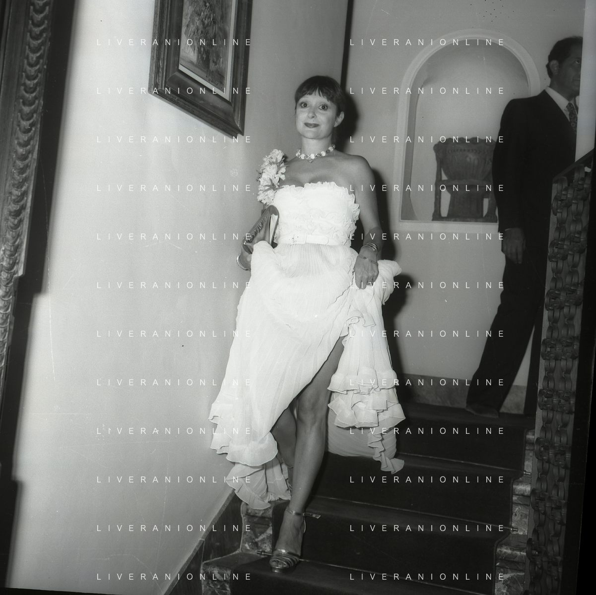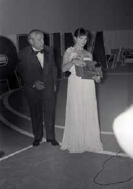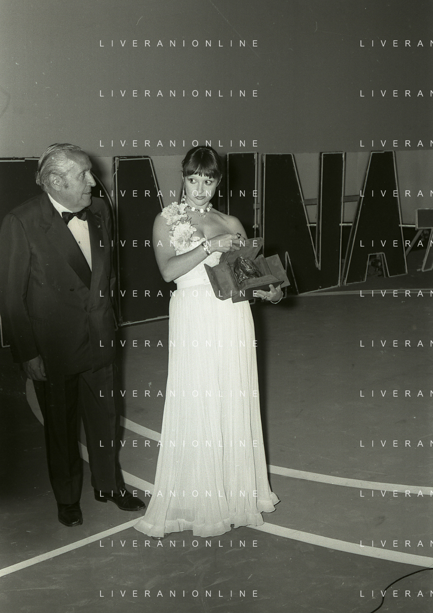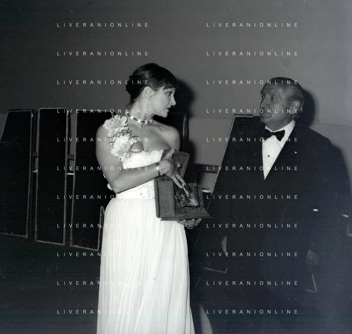 NEG-RETROSPETTIVA ADRIANA ASTI ATTRICE NELLA FOTO ADRIANA ASTI CON MIKE BONGIORNO AL 19 PREMIO DEL DAVID DI DONATELLO A TAORMINA ANNO 1974 AG ALDO LIVERANI SAS