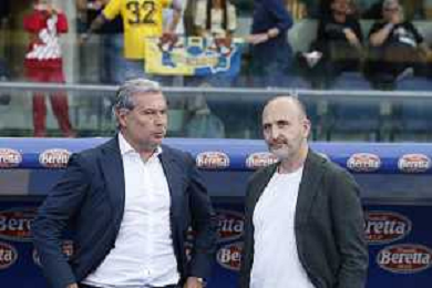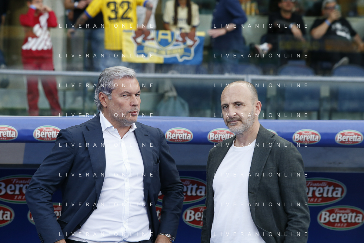 Sean Sogliano Sport director of Hellas Verona FC and Piero Ausilio Sport Director of Inter FC speaks during Hellas Verona FC vs Internazionale FC, 38° Serie A Tim 2023-24 game at Marcantonio Bentegodi Stadium in Verona (VR), Italy, on May 26, 2024. (Photo by Davide Casentini) / AGENZIA ALDO LIVERANI SAS