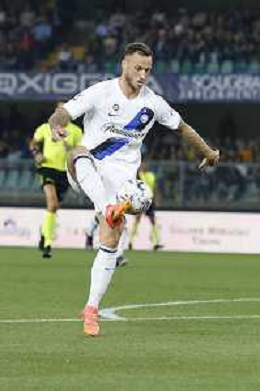 Marko Arnautovic of Inter FC play the ball during Hellas Verona FC vs Internazionale FC, 38° Serie A Tim 2023-24 game at Marcantonio Bentegodi Stadium in Verona (VR), Italy, on May 26, 2024. (Photo by Davide Casentini) / AGENZIA ALDO LIVERANI SAS