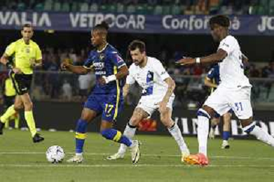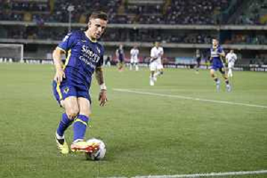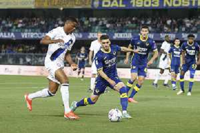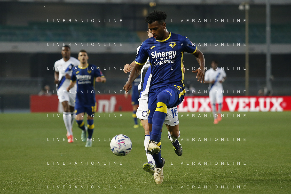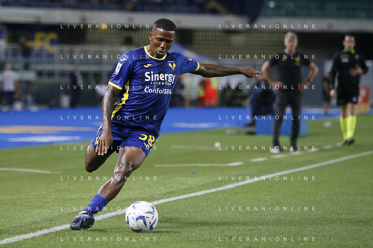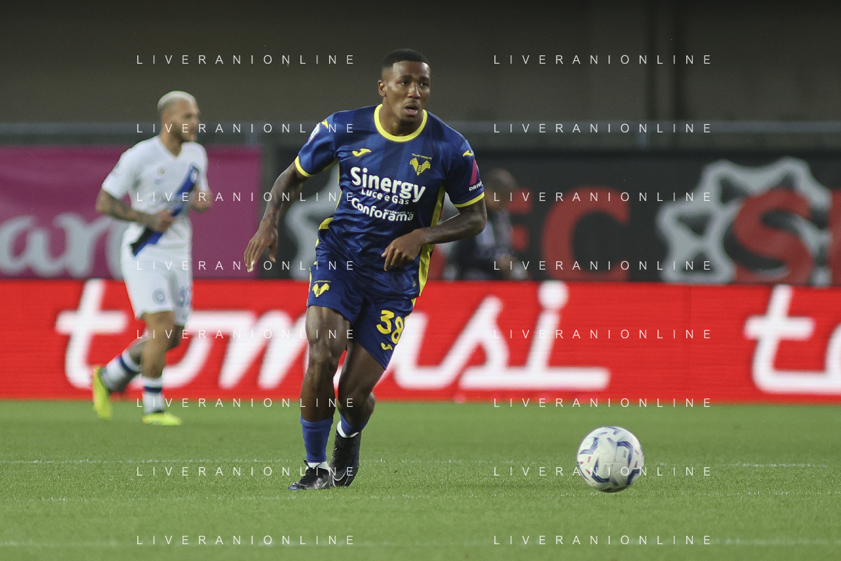 Jackosn Tchatchousa of Hellas Verona FC play the ball during Hellas Verona FC vs Internazionale FC, 38° Serie A Tim 2023-24 game at Marcantonio Bentegodi Stadium in Verona (VR), Italy, on May 26, 2024. (Photo by Davide Casentini) / AGENZIA ALDO LIVERANI SAS