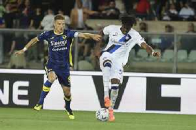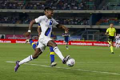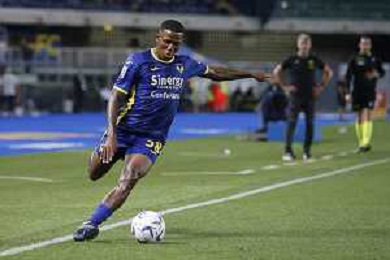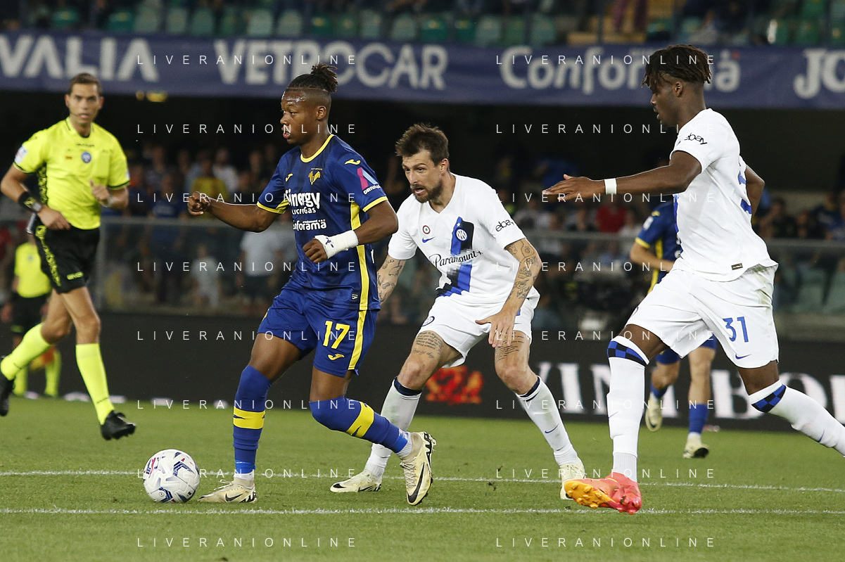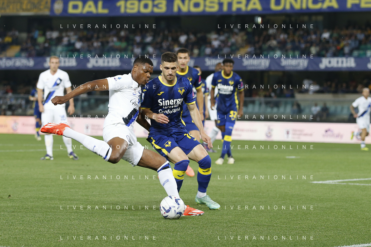 Tijjani Noslin of Hellas Verona FC play the ball during Hellas Verona FC vs Internazionale FC, 38° Serie A Tim 2023-24 game at Marcantonio Bentegodi Stadium in Verona (VR), Italy, on May 26, 2024. (Photo by Davide Casentini) / AGENZIA ALDO LIVERANI SAS