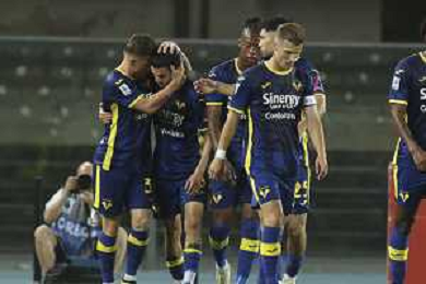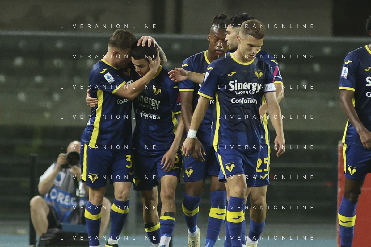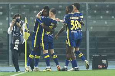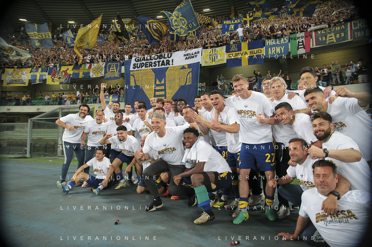 Hellas Verona celebrate at the end of Hellas Verona FC vs Internazionale FC, 38° Serie A Tim 2023-24 game at Marcantonio Bentegodi Stadium in Verona (VR), Italy, on May 26, 2024. (Photo by Davide Casentini) / AGENZIA ALDO LIVERANI SAS