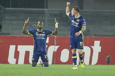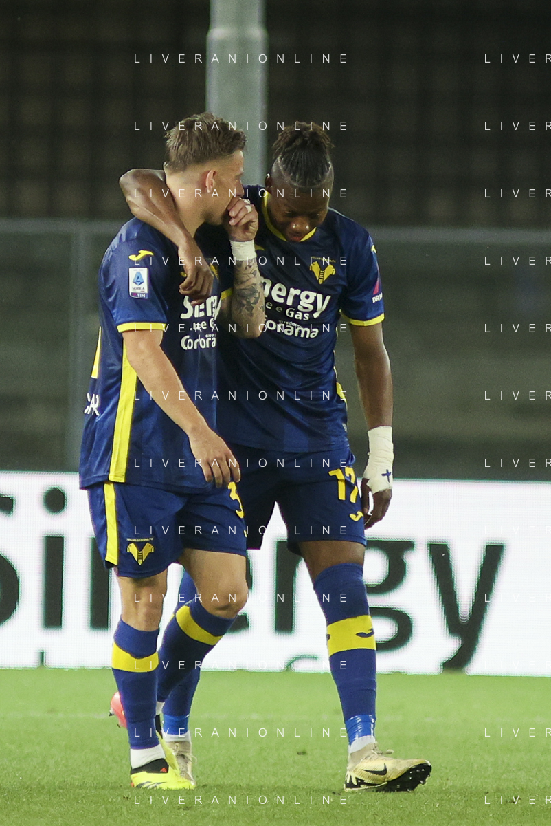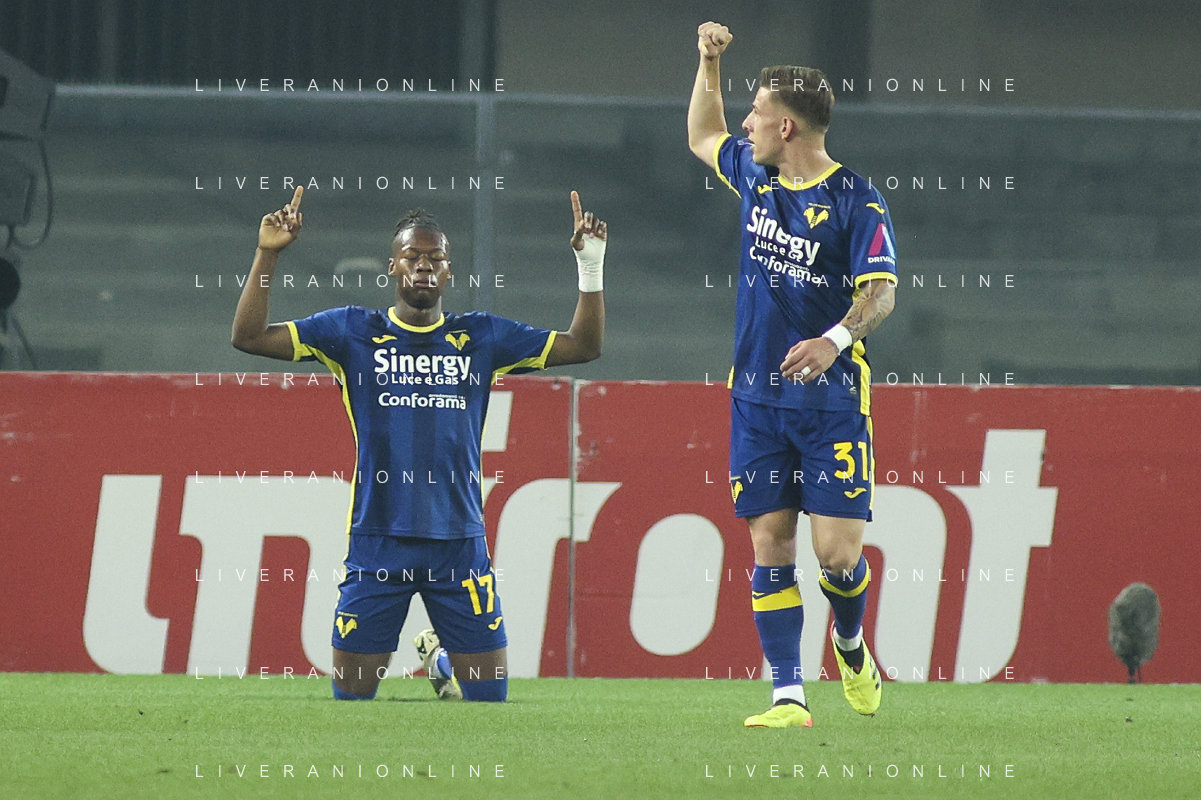 Tijjani Noslin of Hellas Verona FC celebrates after scoring during Hellas Verona FC vs Internazionale FC, 38° Serie A Tim 2023-24 game at Marcantonio Bentegodi Stadium in Verona (VR), Italy, on May 26, 2024. (Photo by Davide Casentini) / AGENZIA ALDO LIVERANI SAS