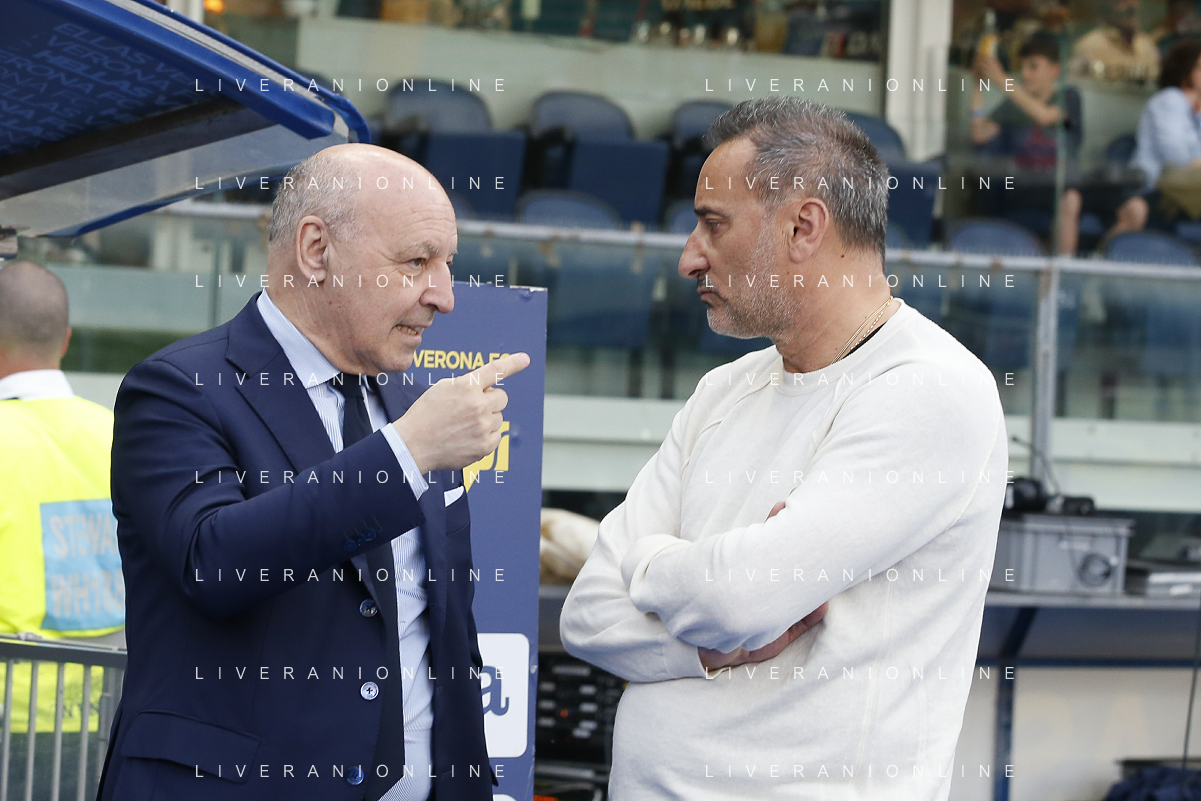 Giuseppe Marotta Executive Officer Sport of Inter FC and Maurizio Setti Chairman of Hellas Verona FC speaks during Hellas Verona FC vs Internazionale FC, 38° Serie A Tim 2023-24 game at Marcantonio Bentegodi Stadium in Verona (VR), Italy, on May 26, 2024. (Photo by Davide Casentini) / AGENZIA ALDO LIVERANI SAS
